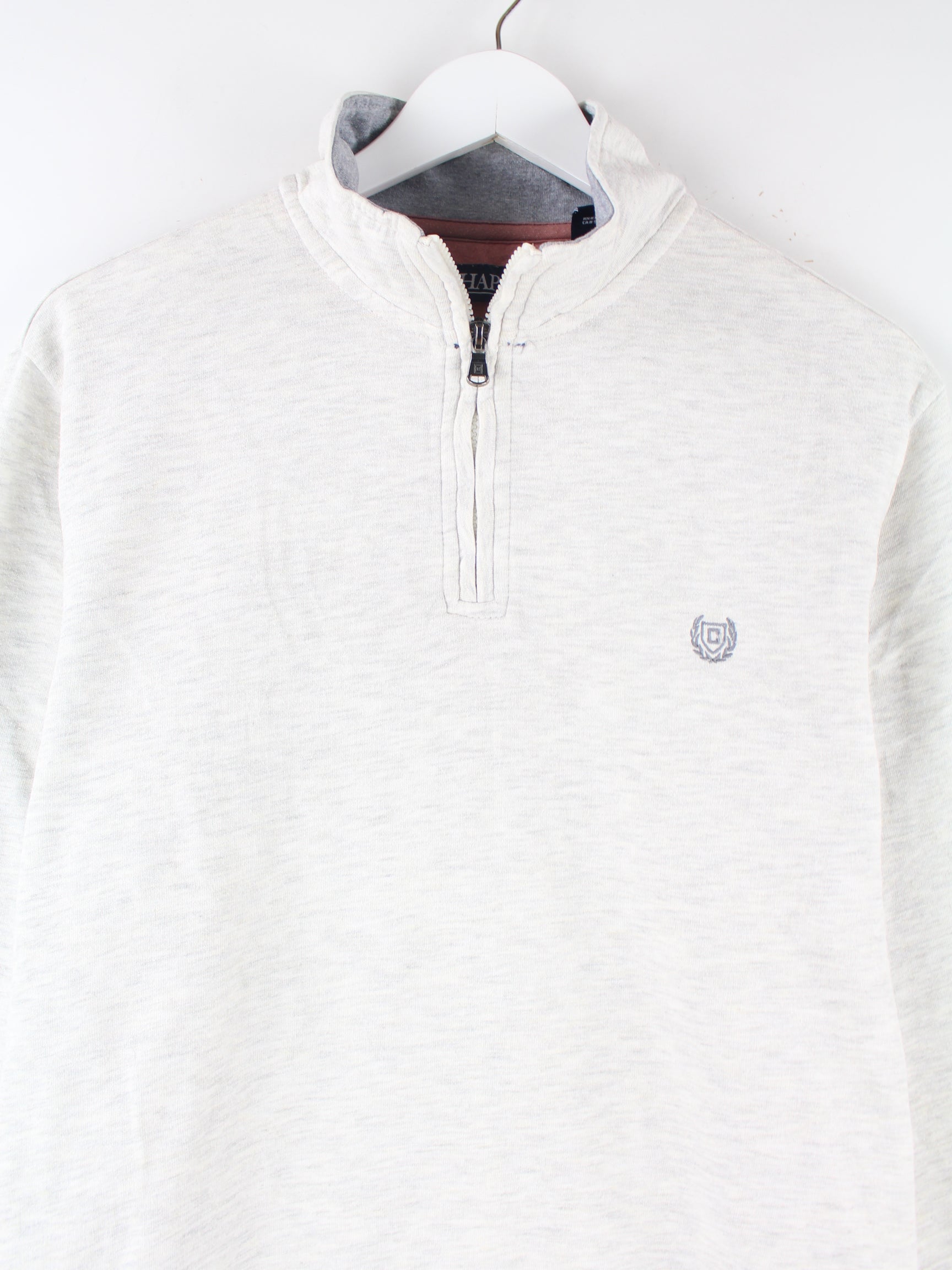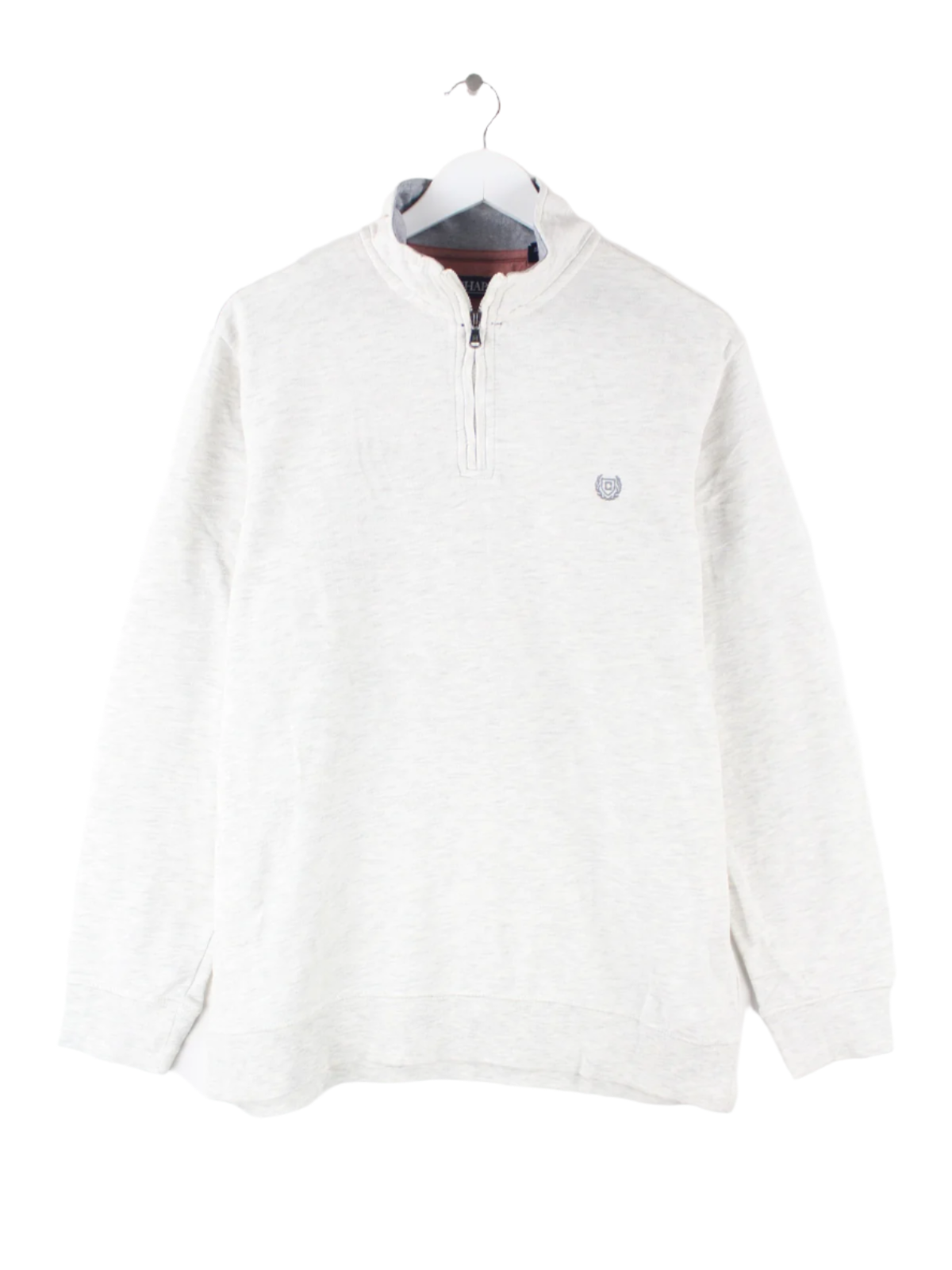 Grauer Sweater mit halbem Reißverschluß aus dem Hause Chaps by Ralph Lauren in Größe L. Er ist aus einer Baumwollmischung gefertigt und in sehr gutem Zustand bei uns vorrätig.