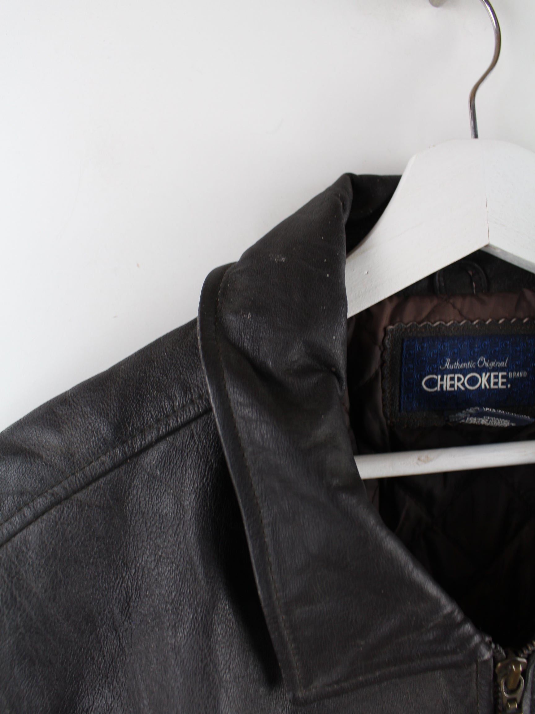 Braune Jacke vom Label Cherokee in Größe XL. Sie ist aus Leder und in gutem Zustand in Stock.