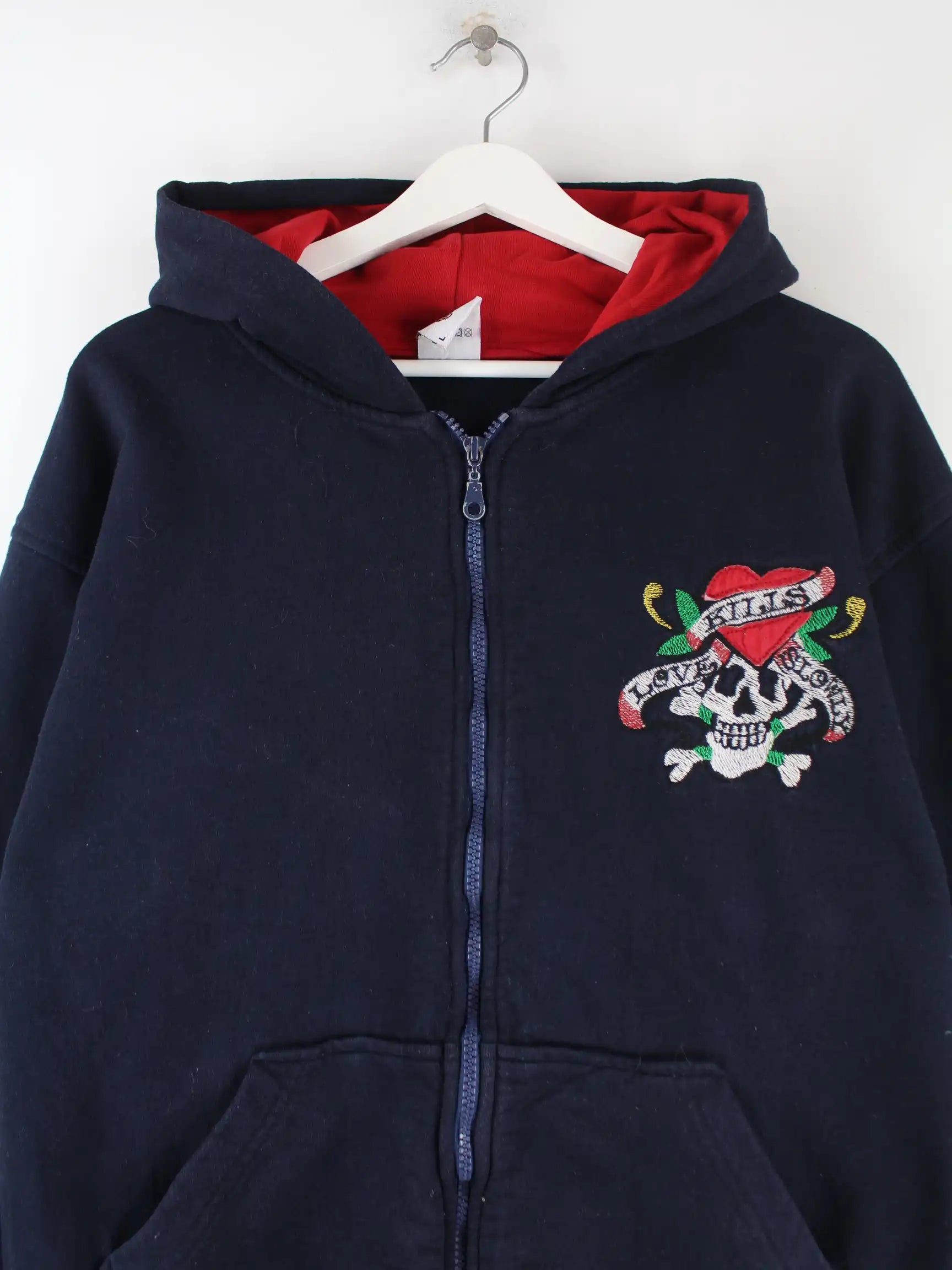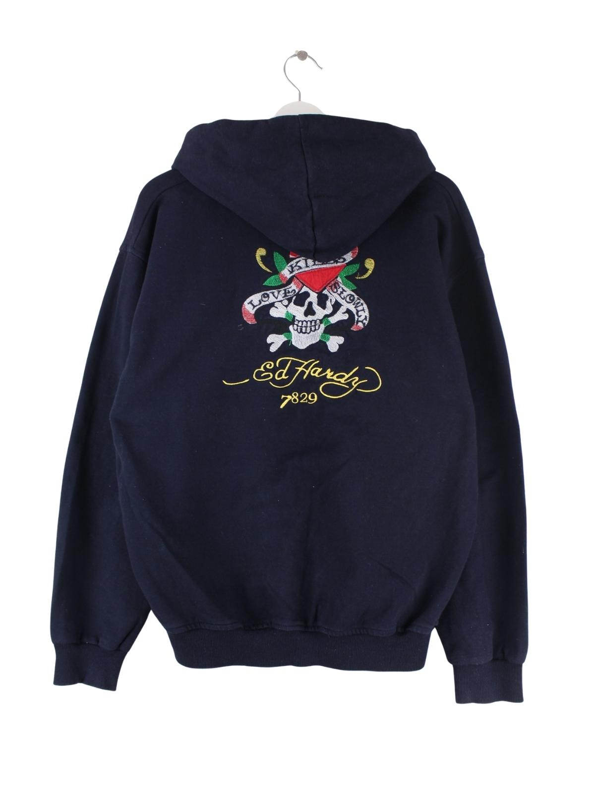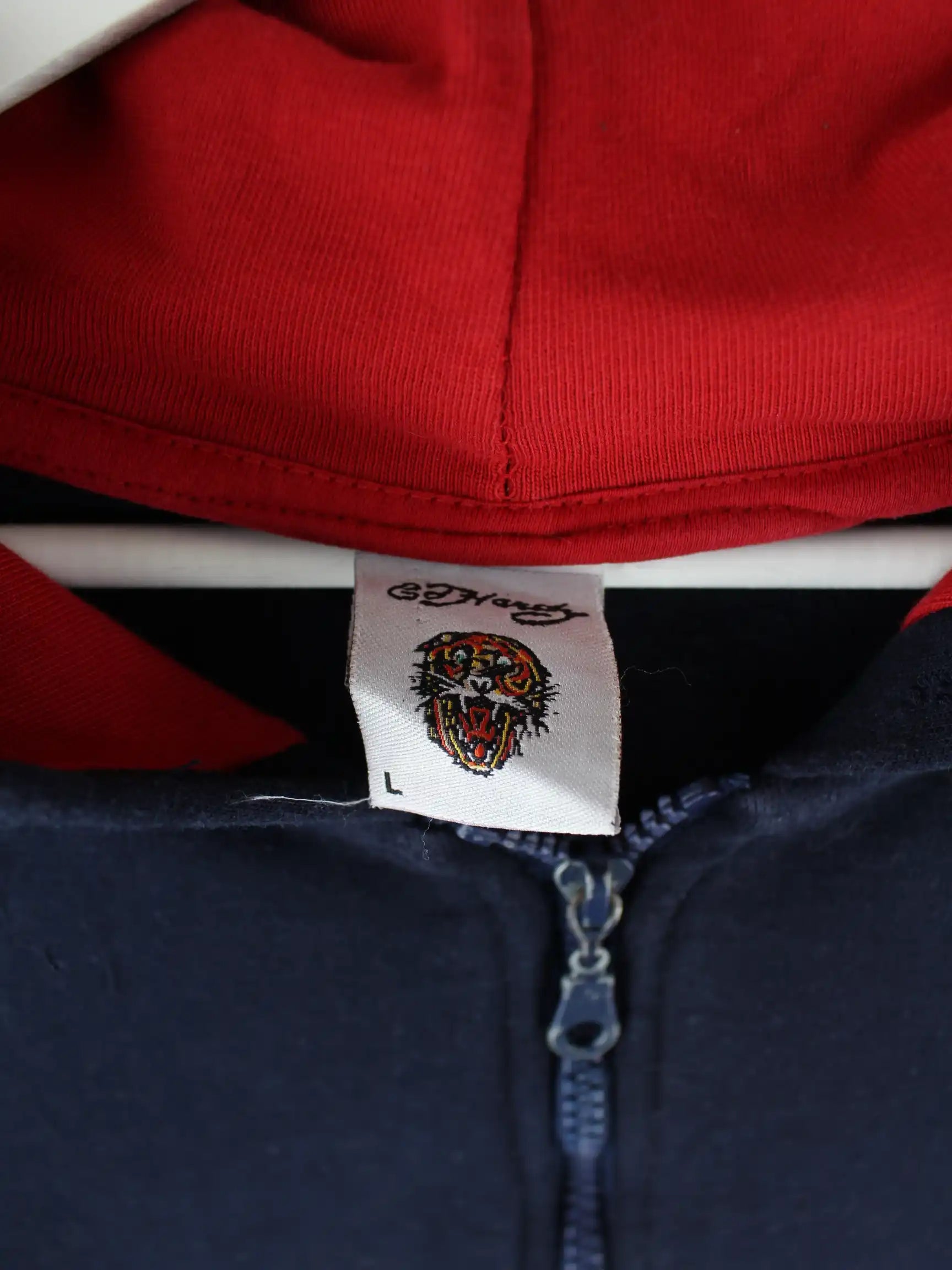 Ed Hardy Damen y2k Embroidered Zip Hoodie Schwarz L