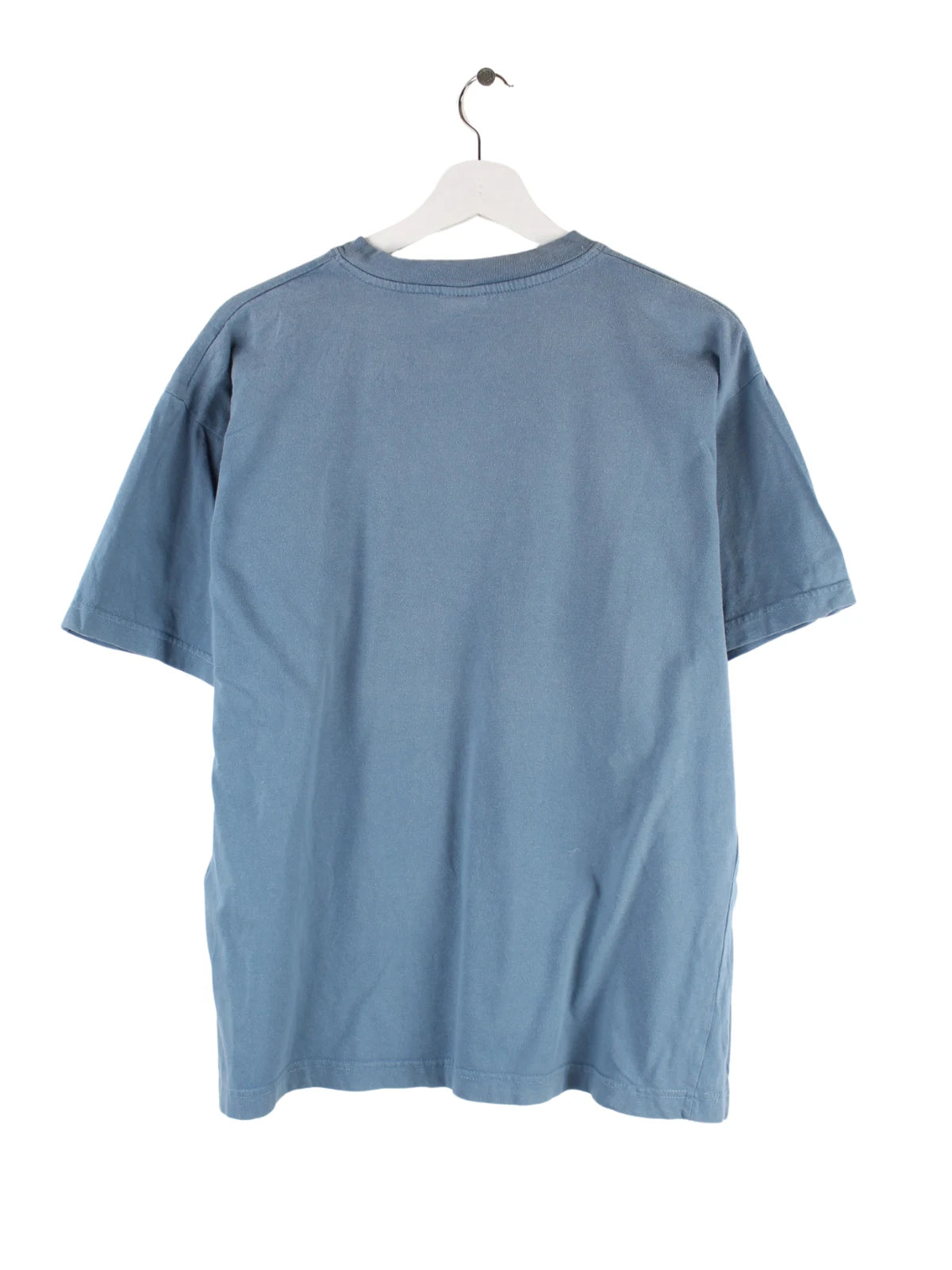 T-Shirt vom Label Fruit of the Loom mit Stickereien in Größe M. Es ist aus Baumwolle hergestellt und in Blau zu haben.