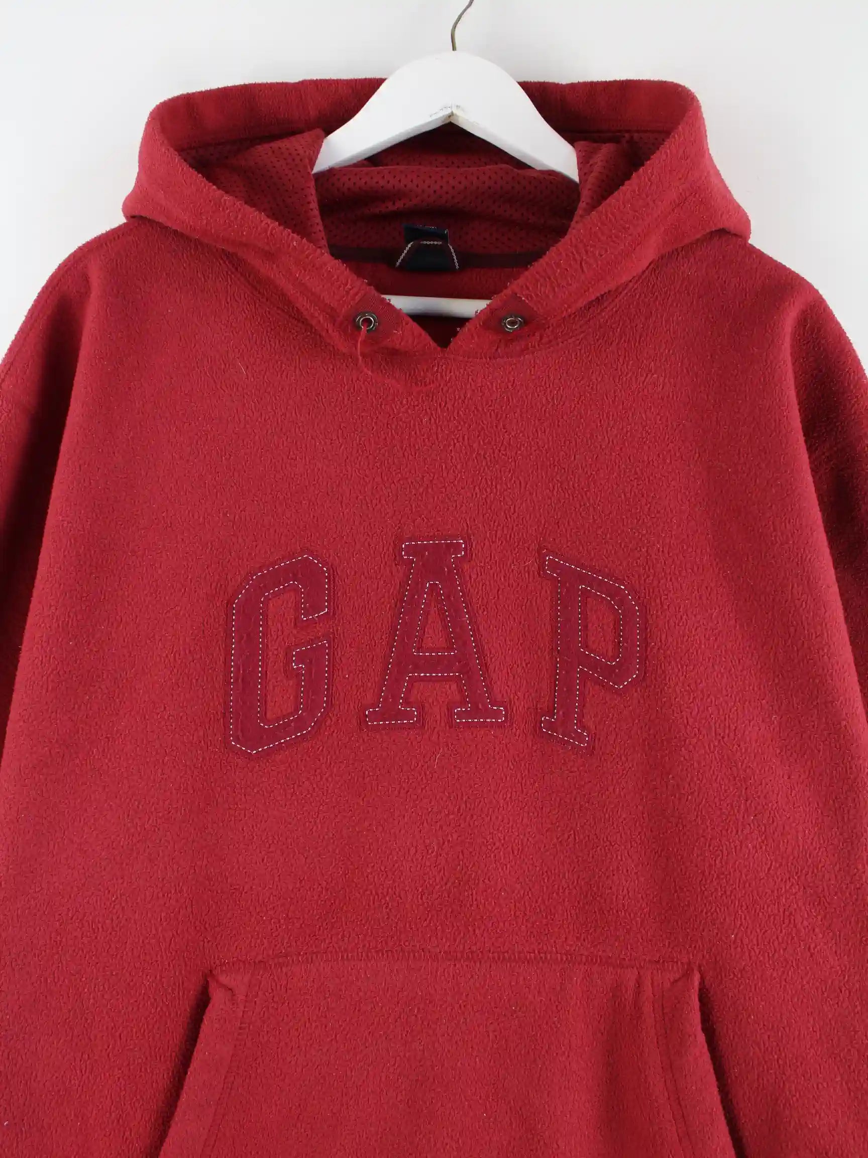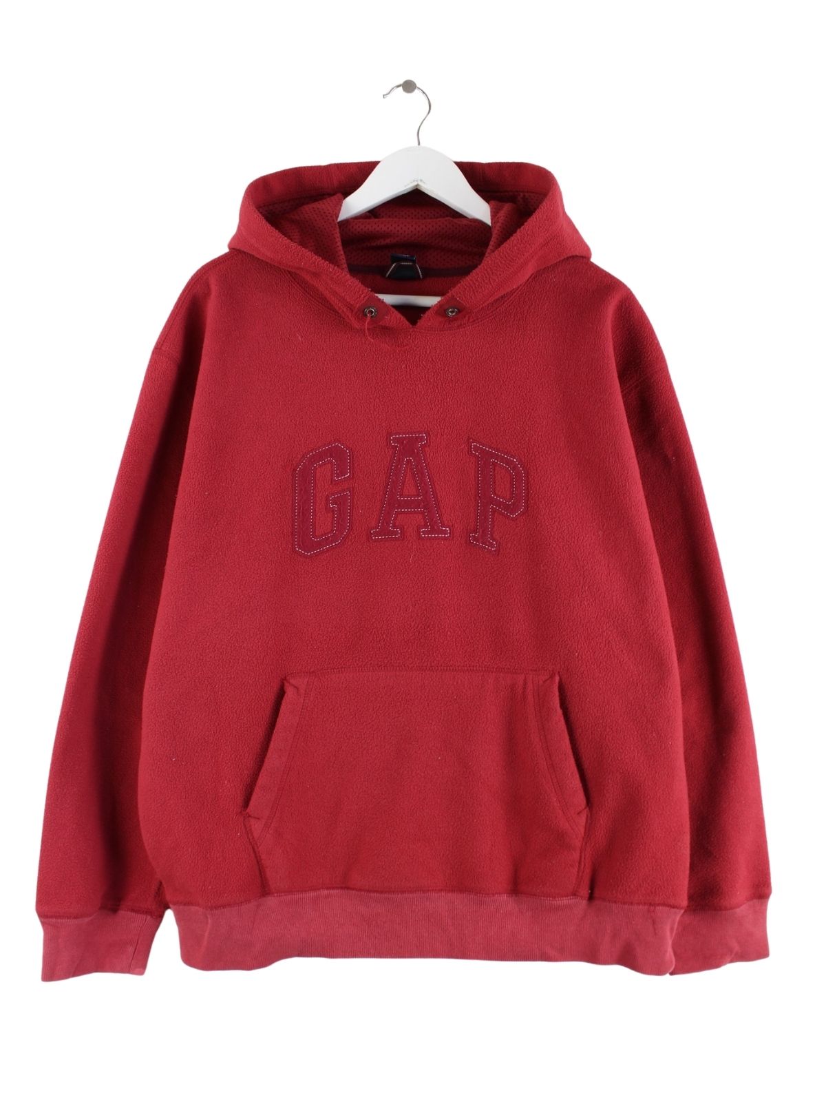 Hoodie aus dem Hause GAP mit Stickereien in Größe L. Er ist aus kuscheligem Fleece gefertigt und in Rot vorrätig.