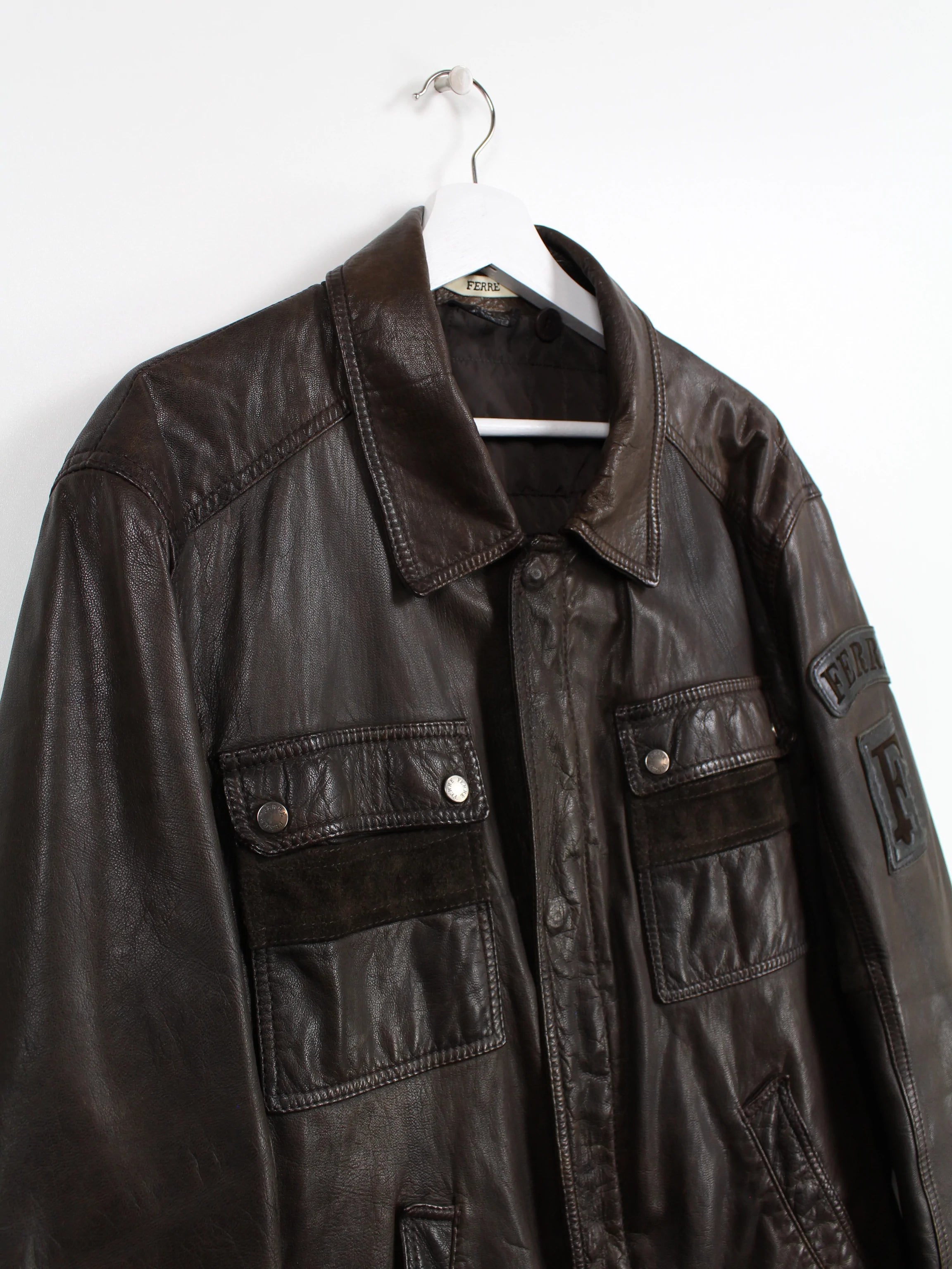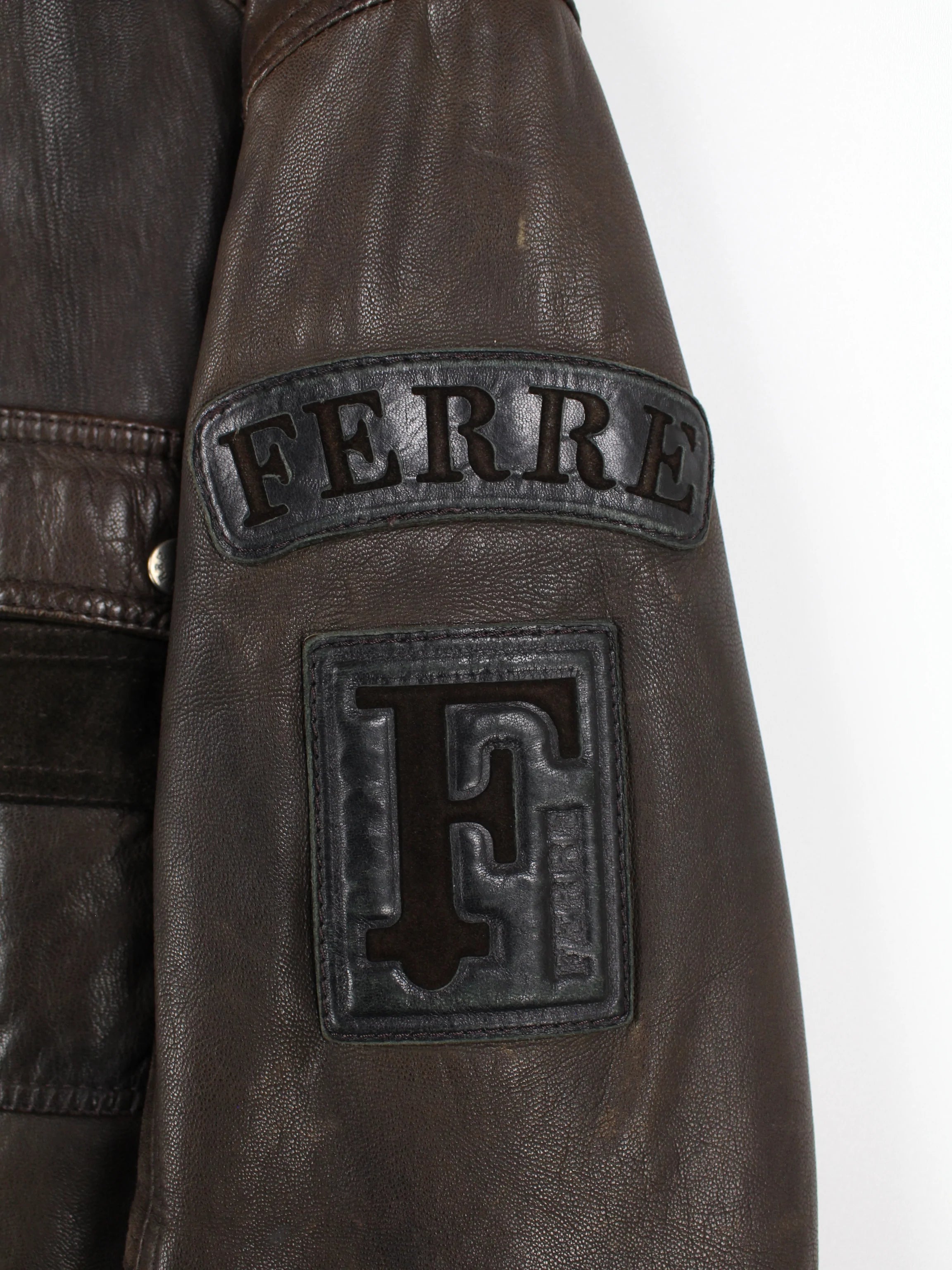 Sehr seltene braune Lederjacke der Designermarke Gianfranco Ferre.
