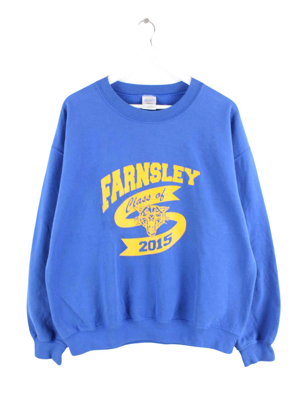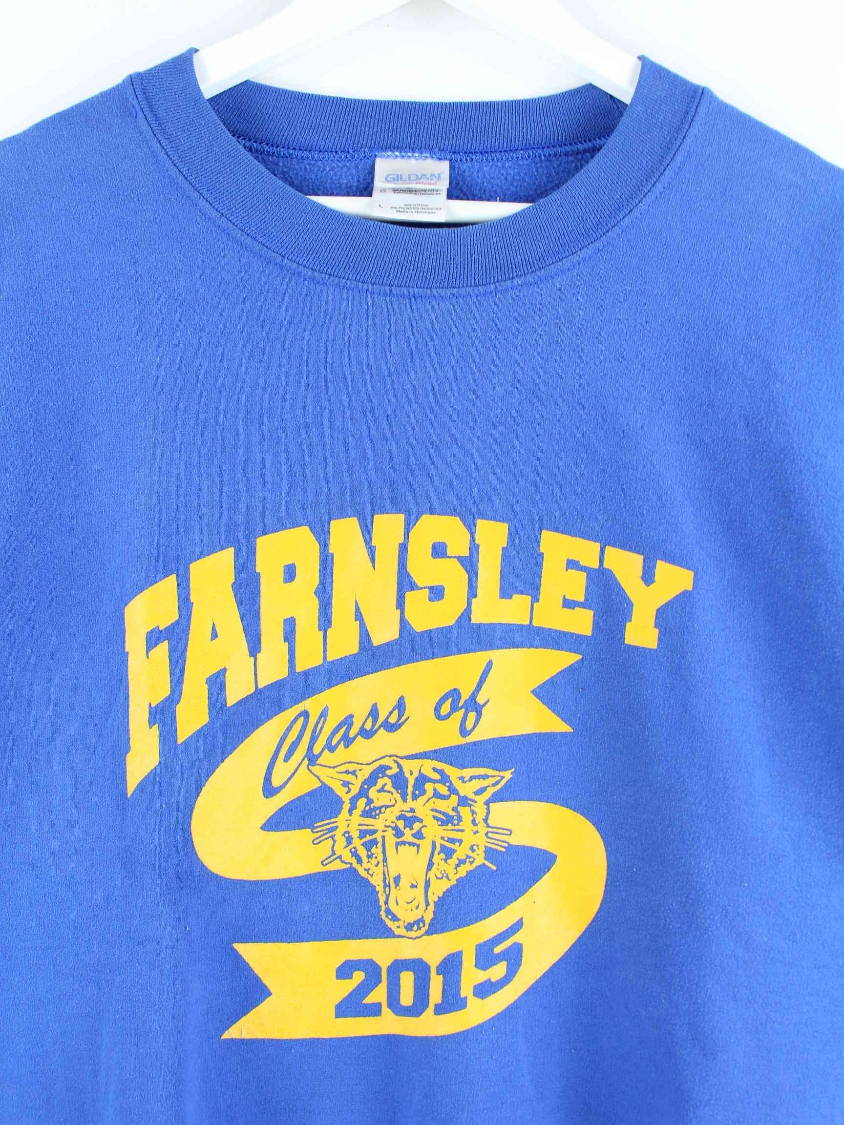 Sweater des Labels Gildan in Größe M. Er ist aus einer Baumwollmischung angefertigt und in Blau lieferbar. Mit chiquem Farnsley Print.