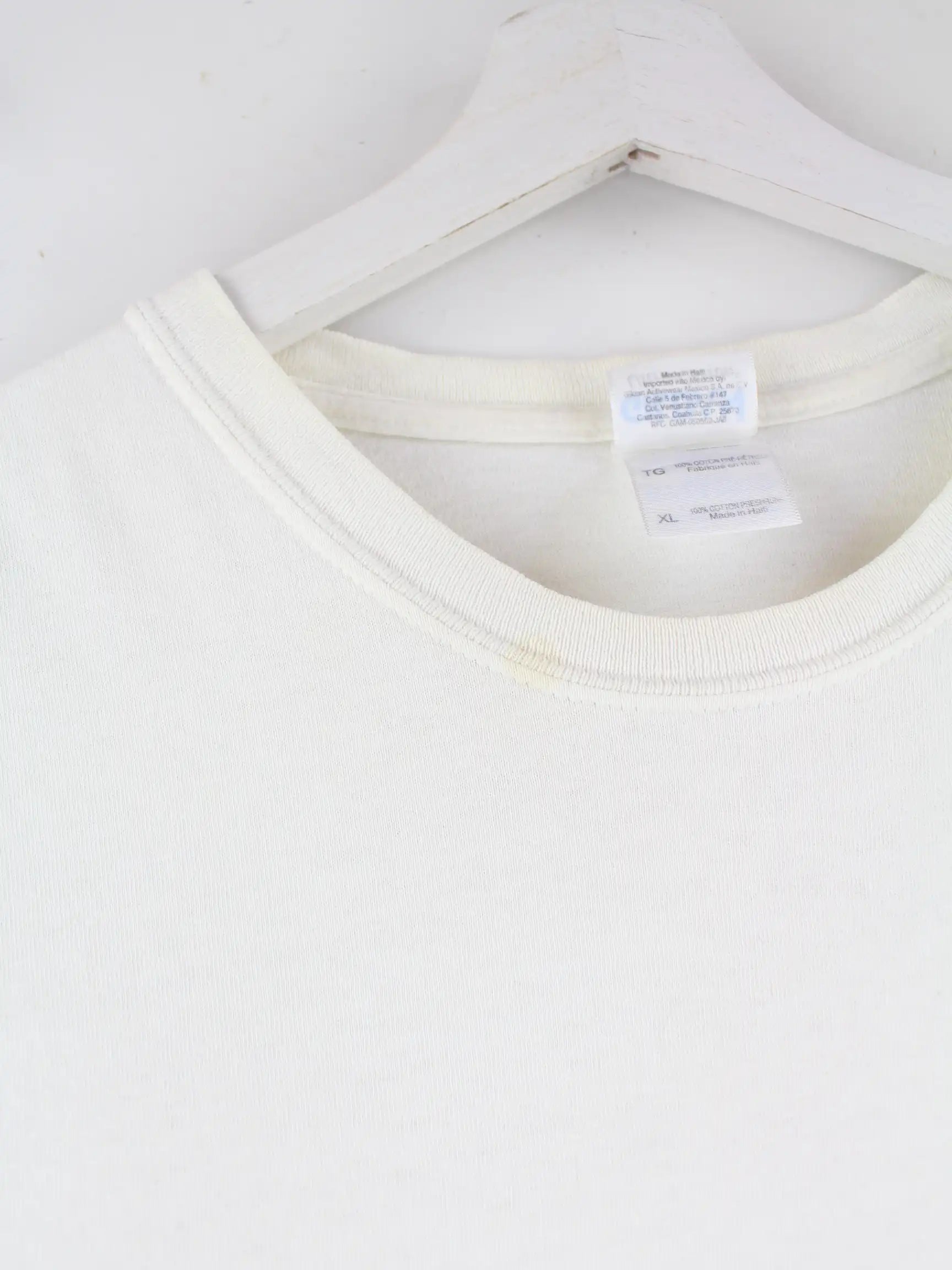 T-Shirt des Labels Gildan in Größe XL. Es ist aus Baumwolle gemacht und in Weiß bei uns vorrätig. Mit chiquem Powerboat Print.