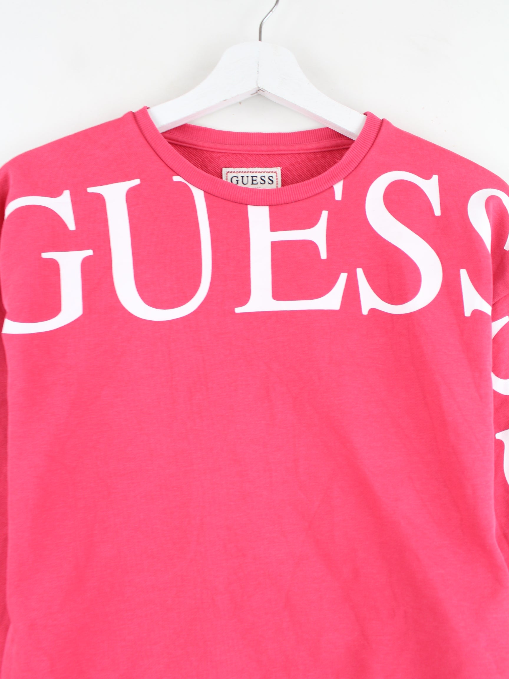 Pinkfarbener Sweater des Labels Guess in Größe S. Er ist aus einer Baumwollmischung und in gutem Zustand zu bekommen. Mit chiquem undefined Print.