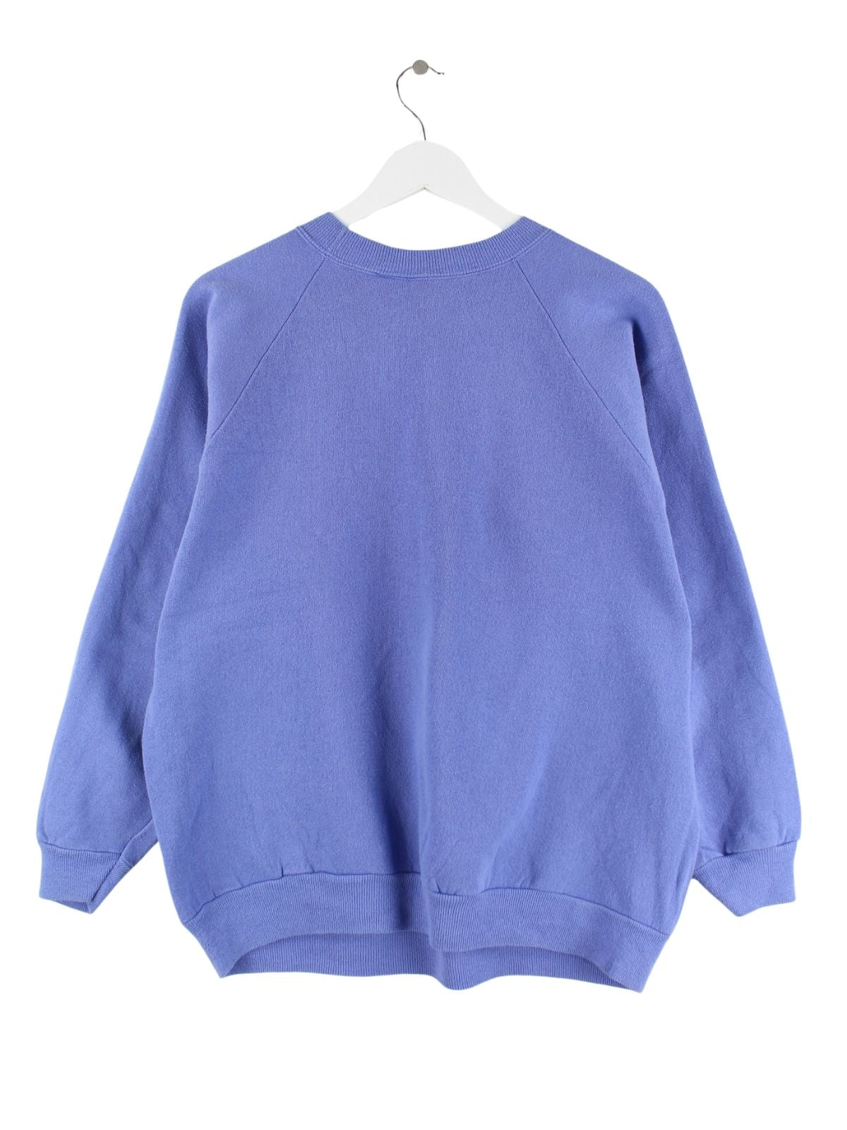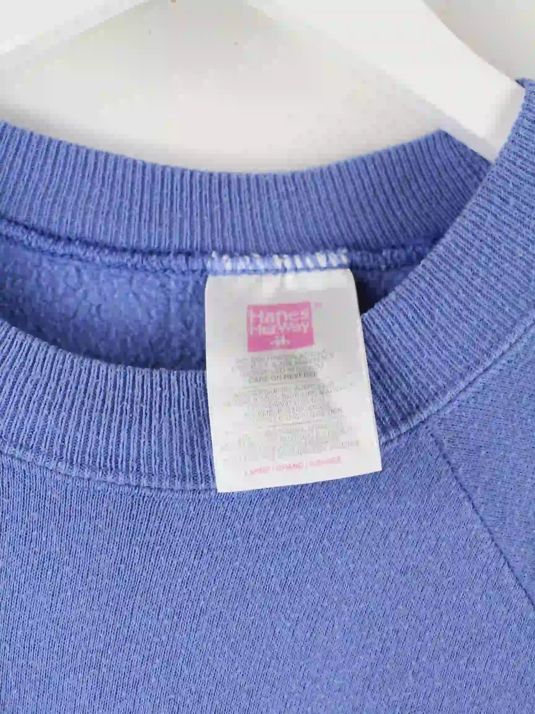 Sweater der Brand Hanes mit gestickten Motiven in Größe M. Er ist aus einer Baumwollmischung gefertigt und in Blau lieferbar.