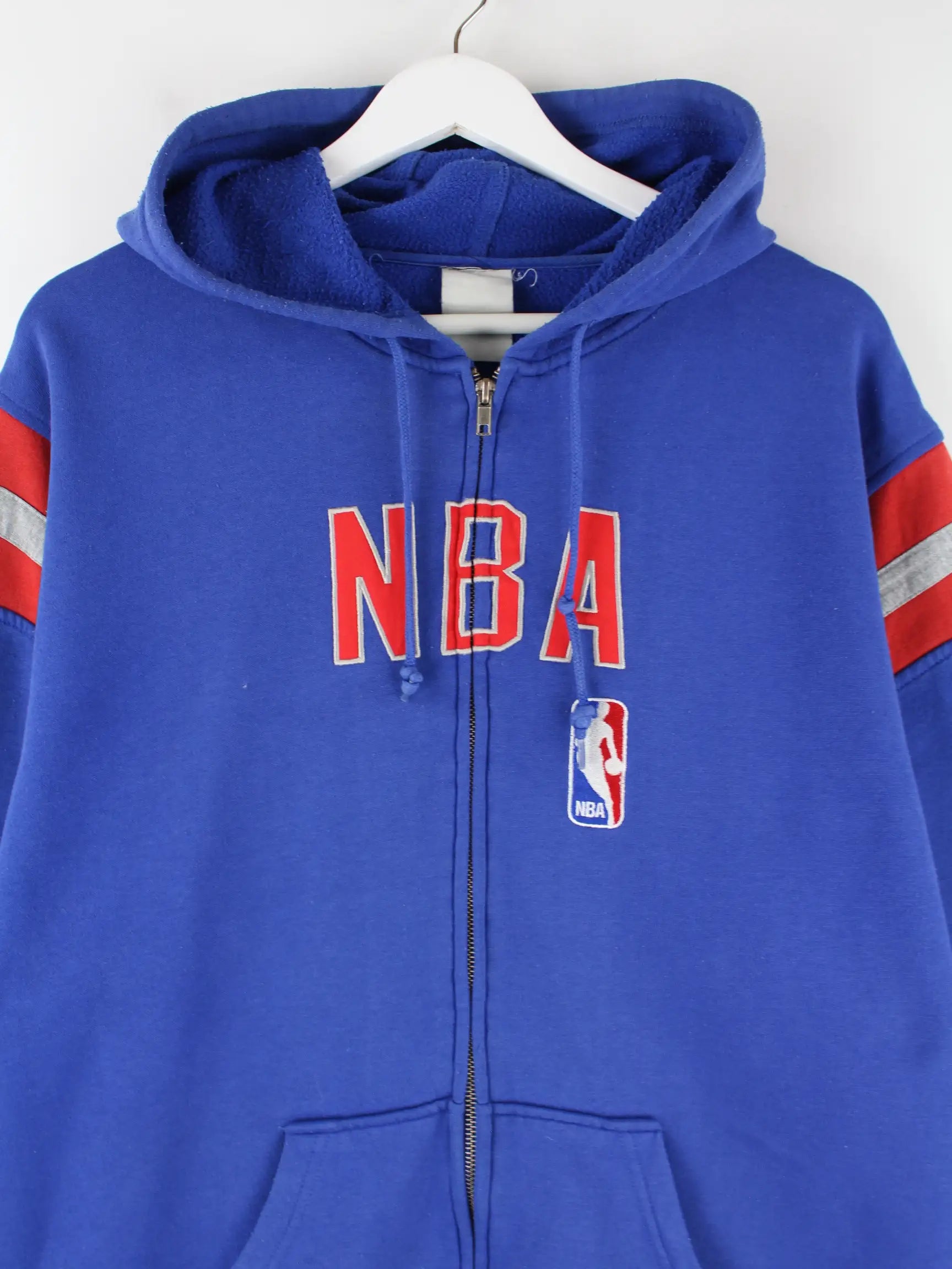 Hoodie vom Label NBA mit gesticktem Logo und Zip in Größe L. Er ist aus einer Baumwollmischung hergestellt und in Blau auf Lager.