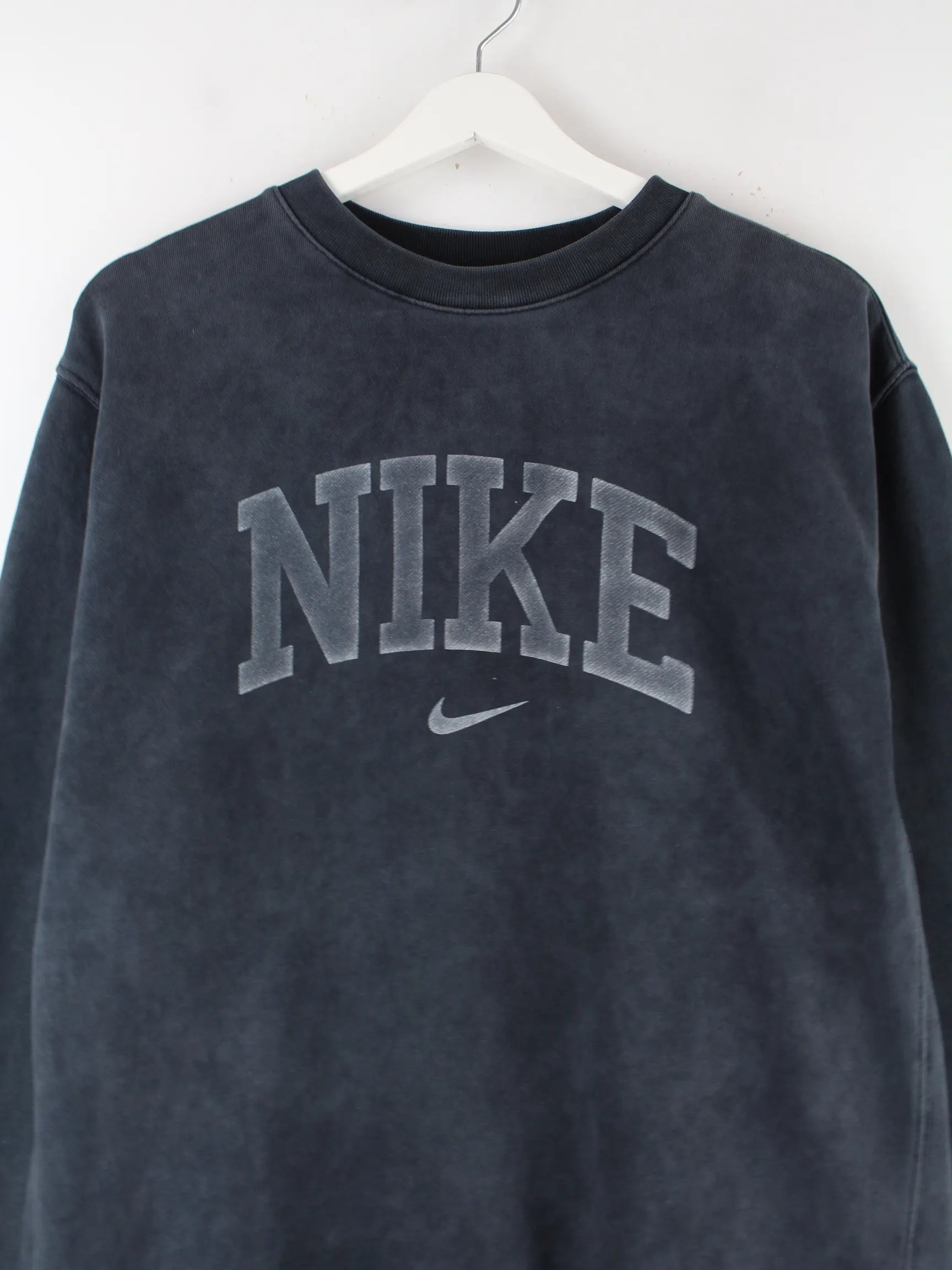 Grauer Sweater vom Brand Nike in Größe M. Er ist aus einer Baumwollmischung angefertigt und in sehr gutem Zustand zu bekommen. Mit seltenem Washed Print.