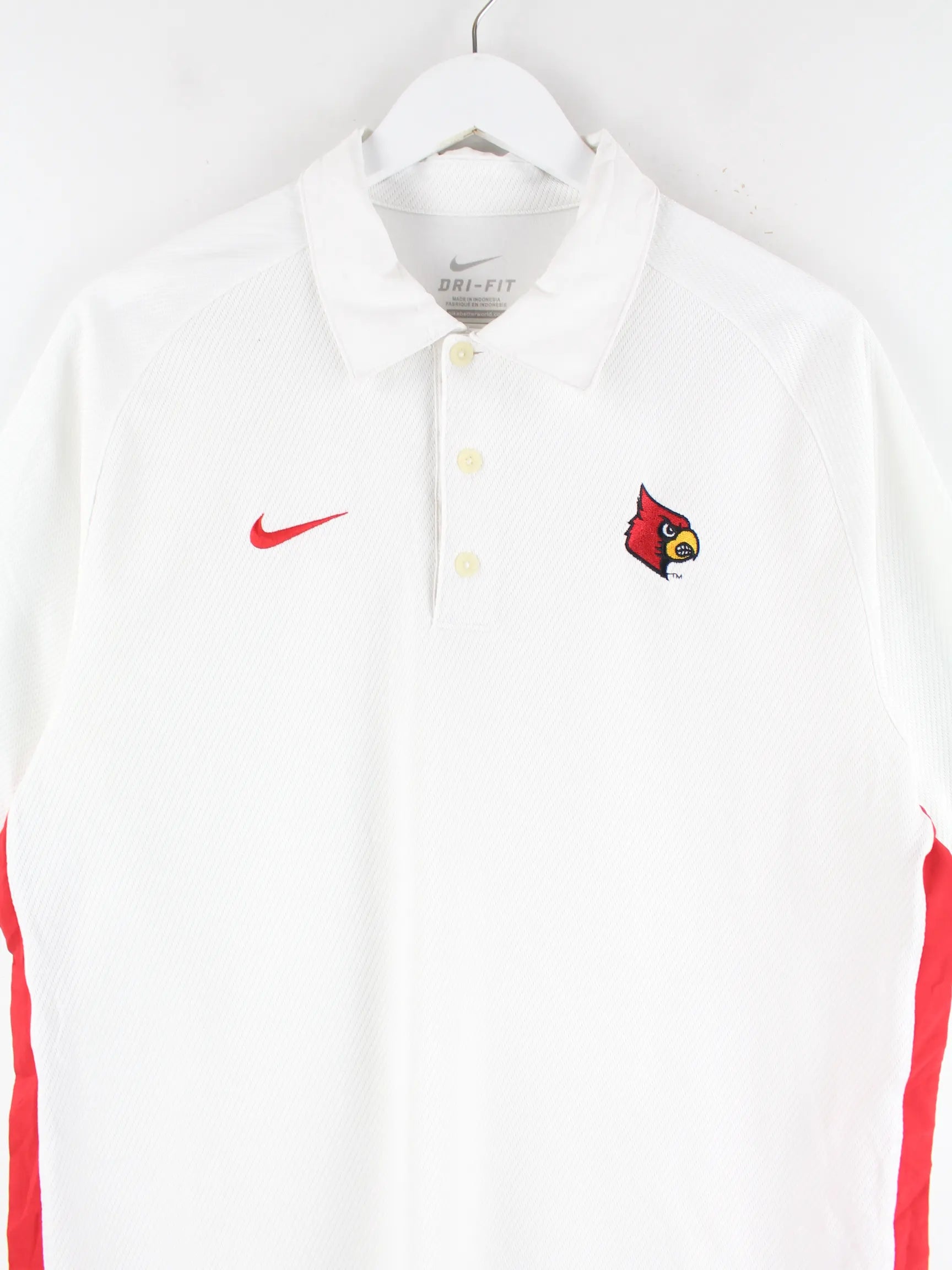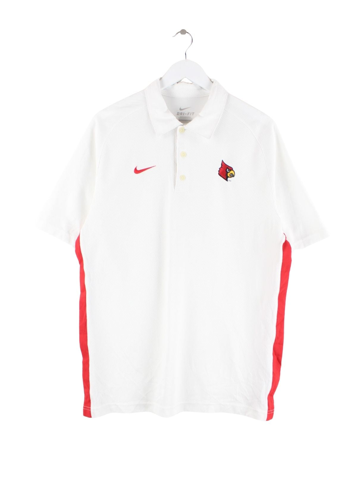 Poloshirt des Labels Nike in Größe M. Es ist aus Synthetik angefertigt und in Weiß im Bestand.