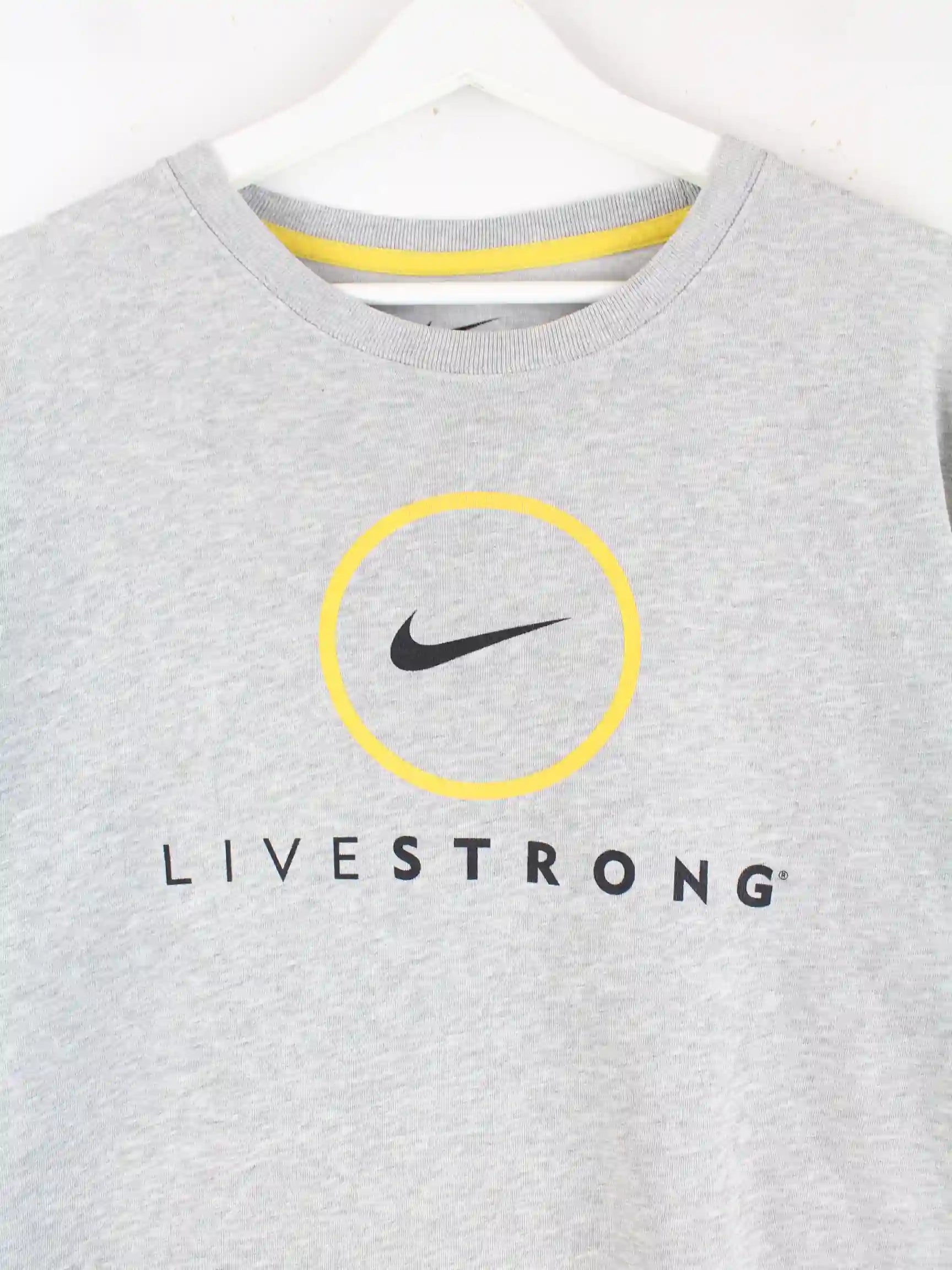Graues T-Shirt vom Label Nike in Größe L. Es ist aus einer Baumwollmischung produziert. Den Zustand würden wir als 'In Ordnung' bezeichnen (vergl. Bilder).