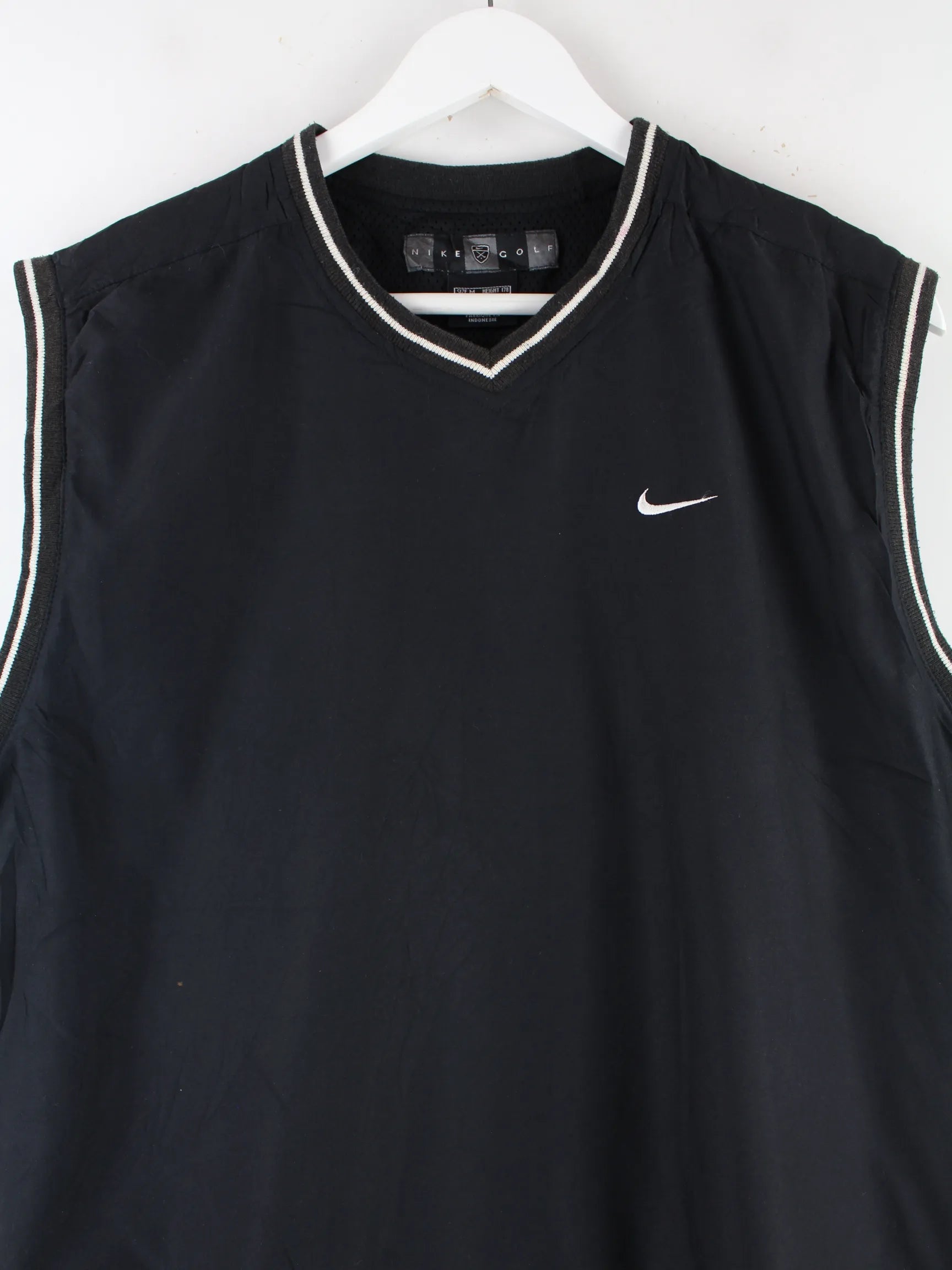 Schwarzer Pullunder vom Brand Nike in Größe M. Er ist aus Synthetik hergestellt und in sehr gutem Zustand bei uns zu bekommen.