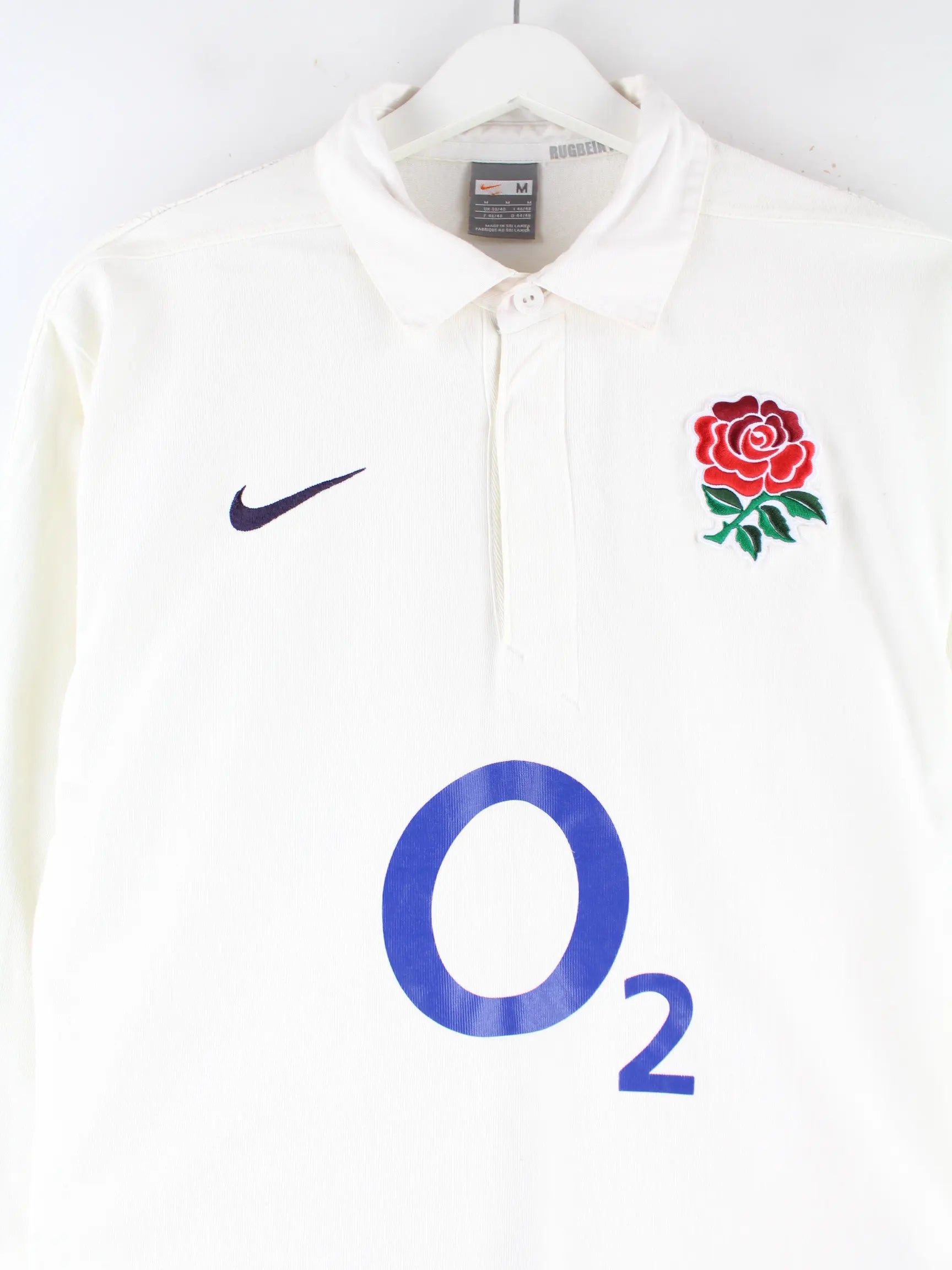 Nike y2k Rose Bowl England Rugby Langarm Polo Weiß M