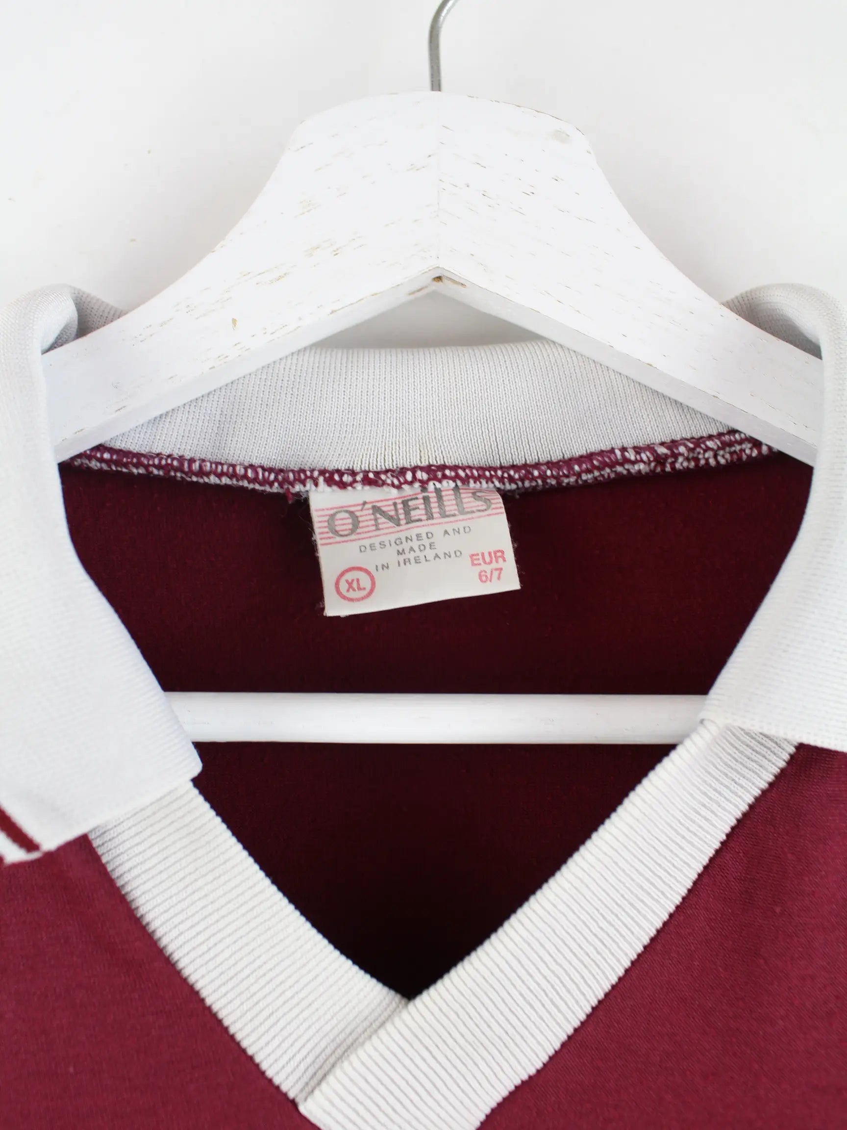 Rotes Trikot der Brand O'Neill aus den 90'ern in Größe XL. Es ist aus Synthetik gemacht. Den Zustand würden wir als 'In Ordnung' bezeichnen (vergl. Bilder).