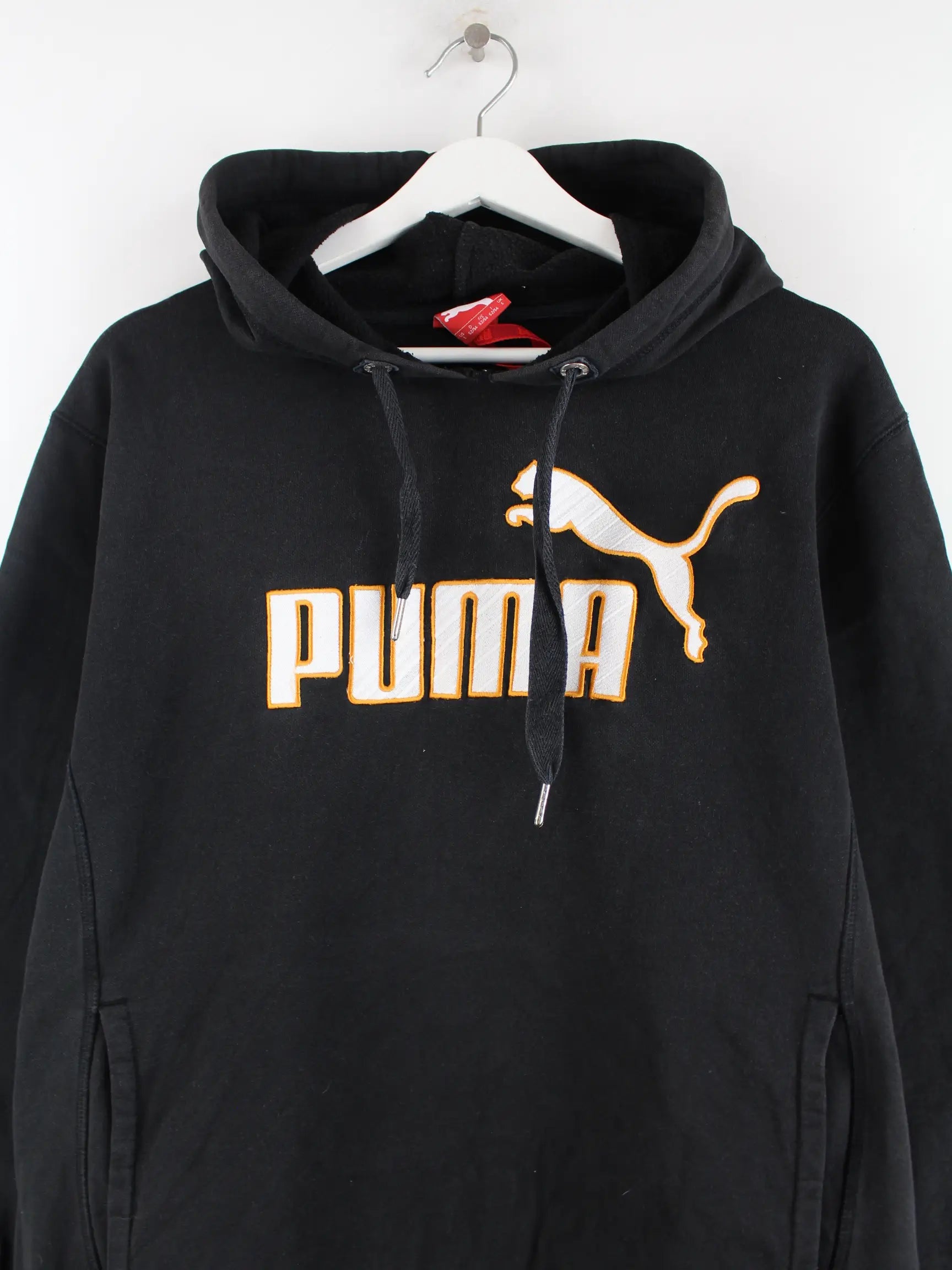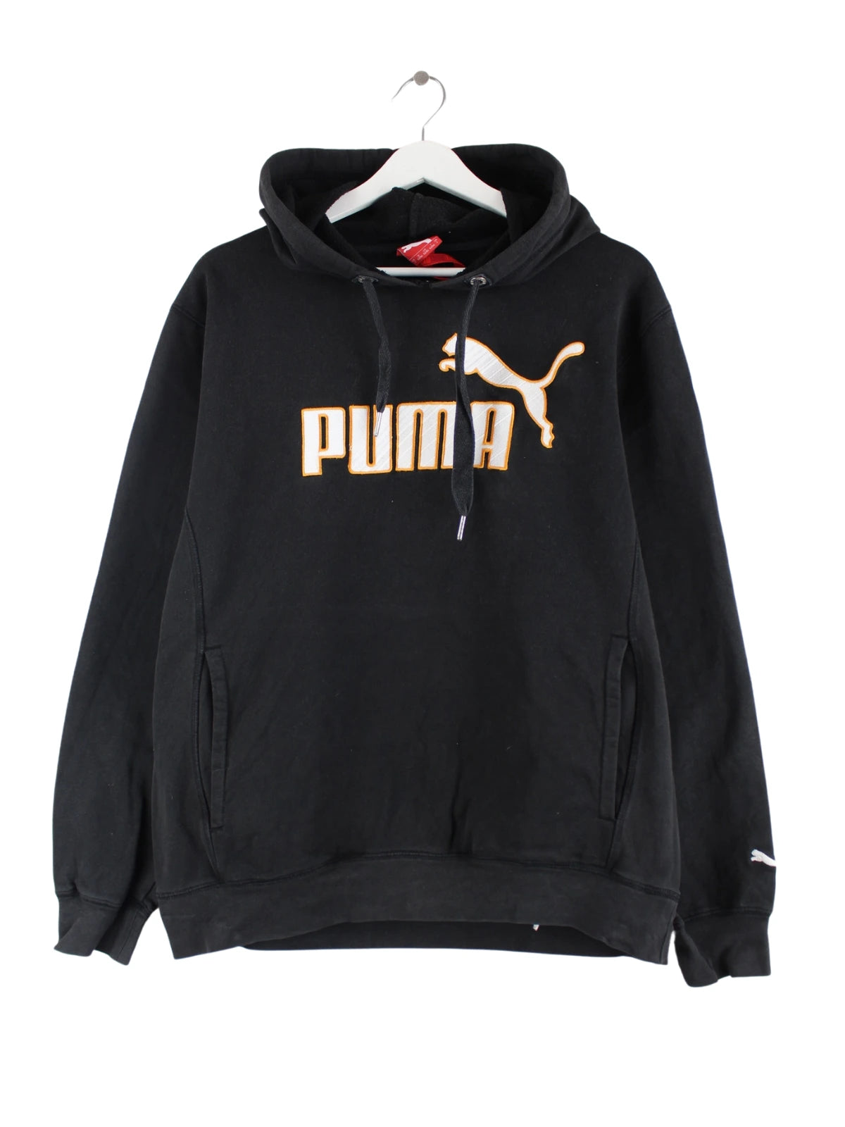 Hoodie vom Label Puma mit gesticktem Logo in Größe L. Er ist aus einer Baumwollmischung angefertigt und in Schwarz lieferbar.