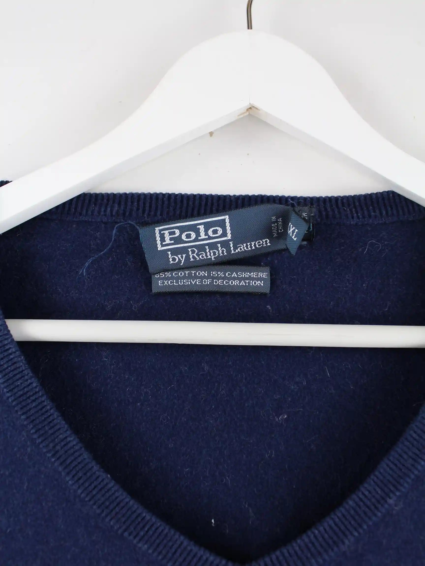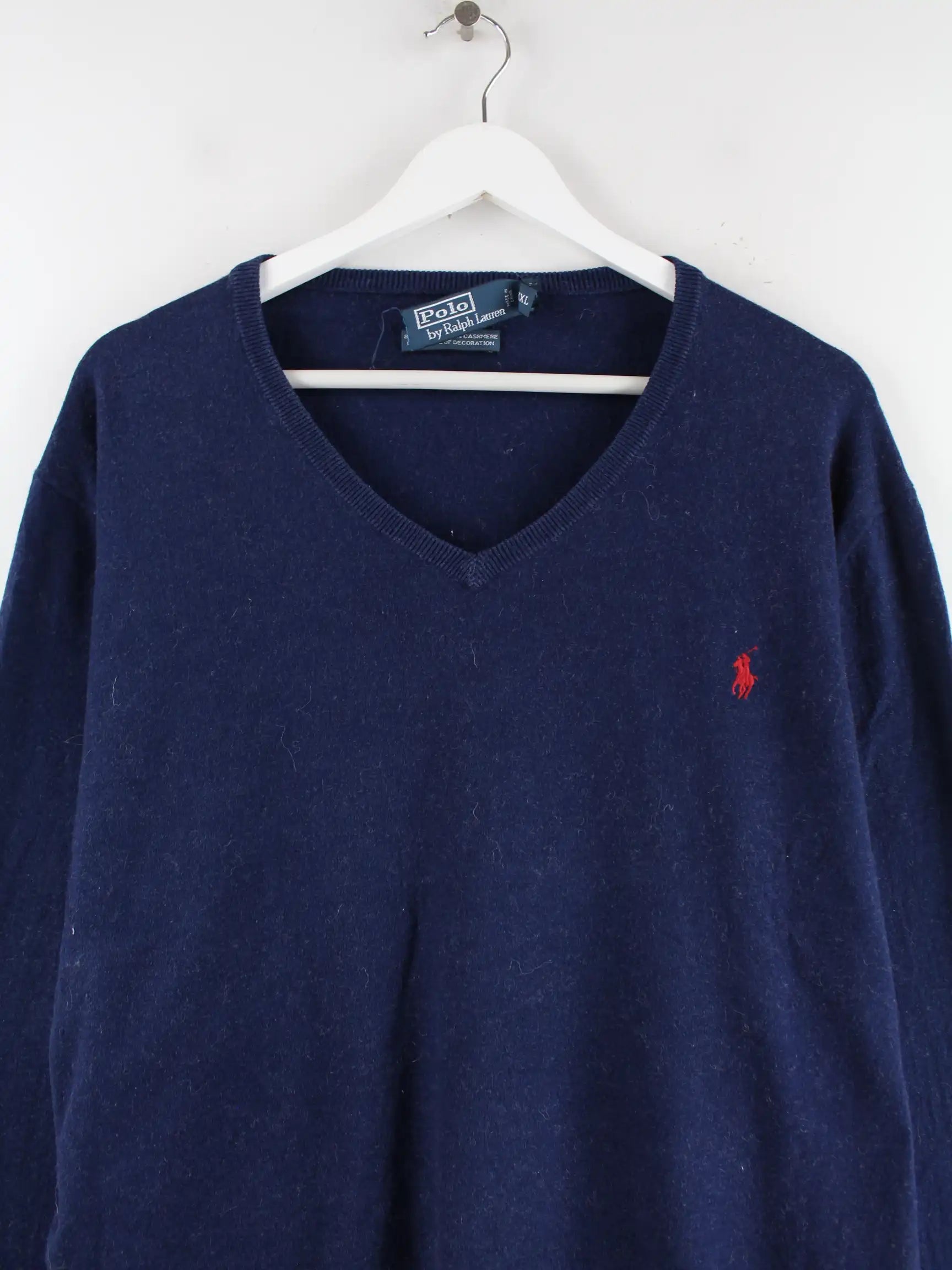 Blauer Pullover aus dem Hause Ralph Lauren in Größe XXL. Er ist aus einer Kaschmirmischung und in gutem Zustand im Bestand.
