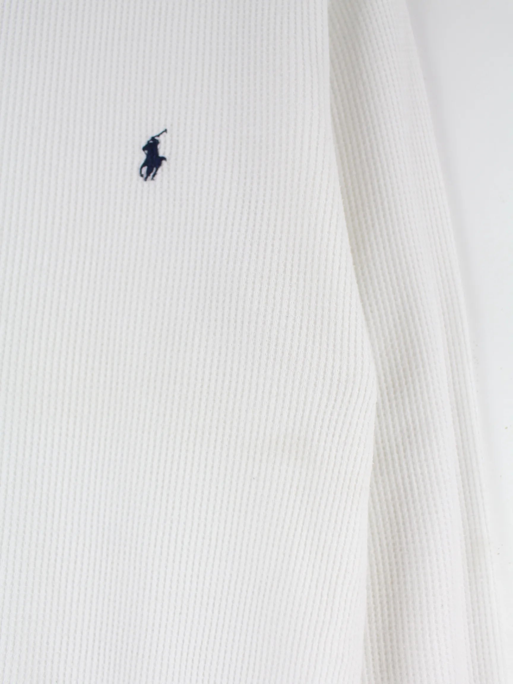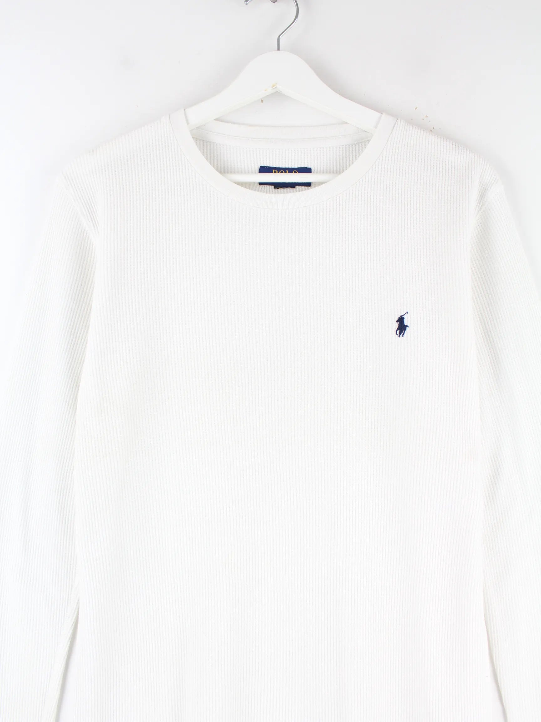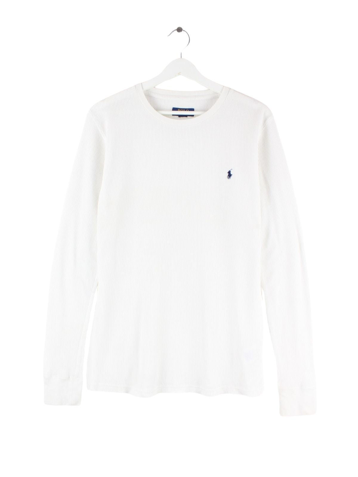 Weißes Sweatshirt vom Label Ralph Lauren in Größe L. Es ist aus einer Baumwollmischung produziert und in gutem Zustand lieferbar.