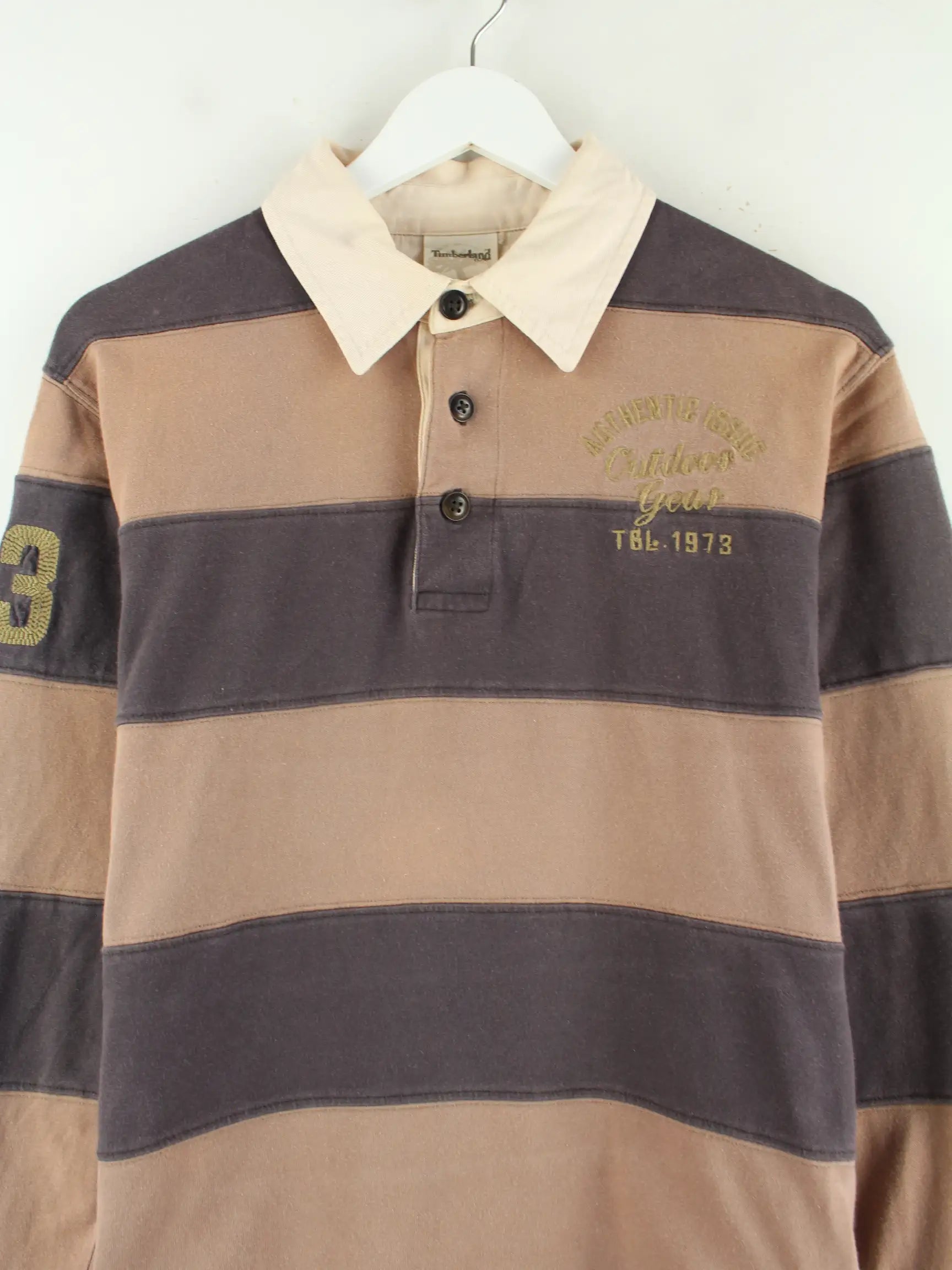 Braunes Poloshirt der Brand Timberland in Größe S. Es ist aus Baumwolle gefertigt und in sehr gutem Zustand in Stock.