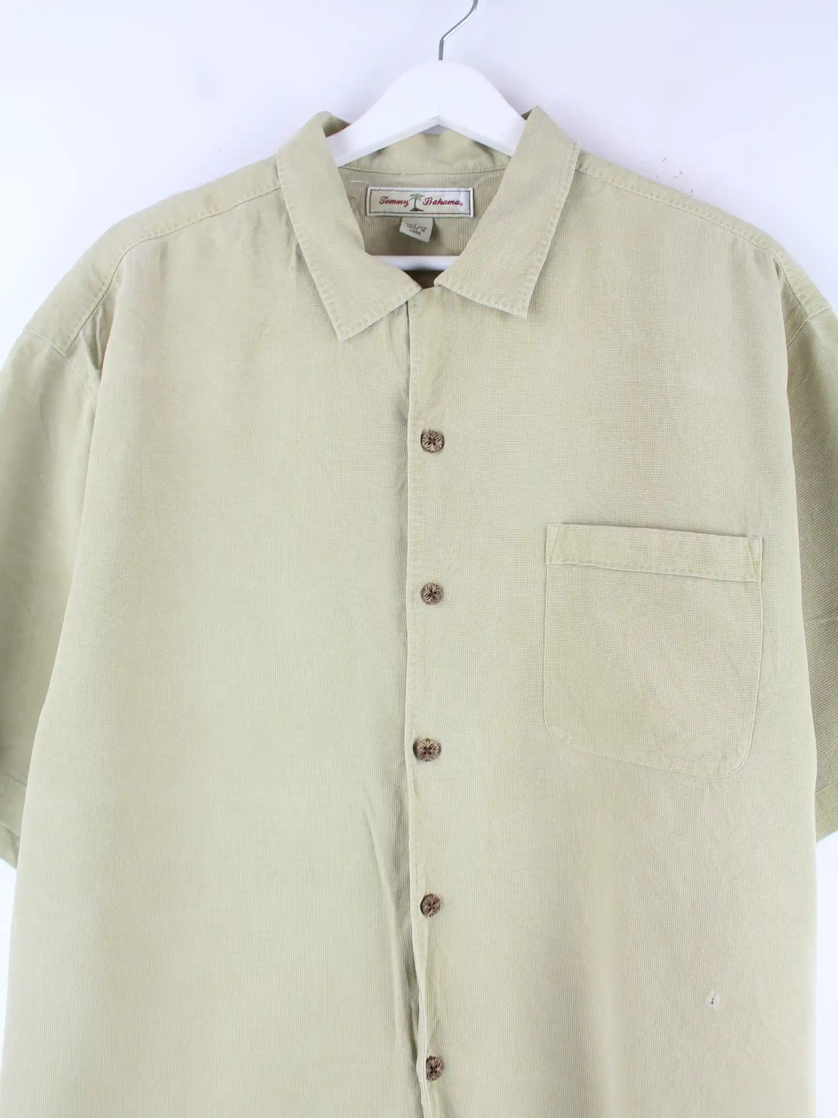 Freizeit Hemd aus dem Hause Tommy Bahama in Größe L. Es ist aus Baumwolle produziert und in Beige bei uns vorrätig.