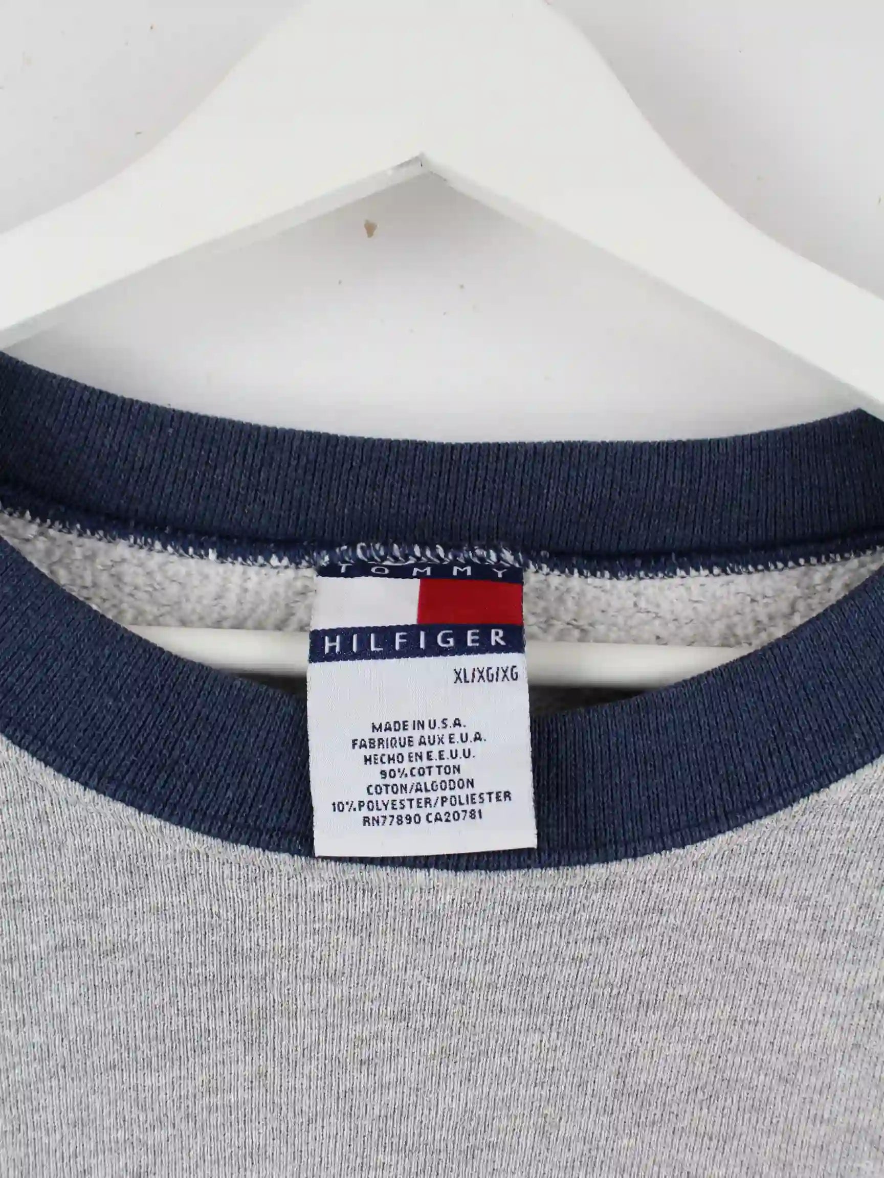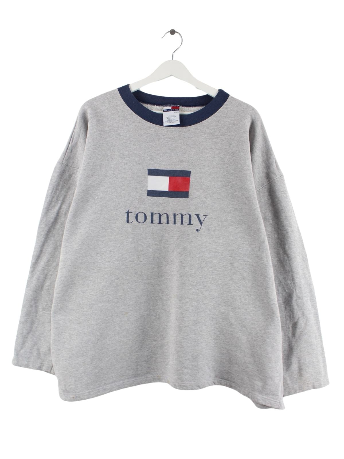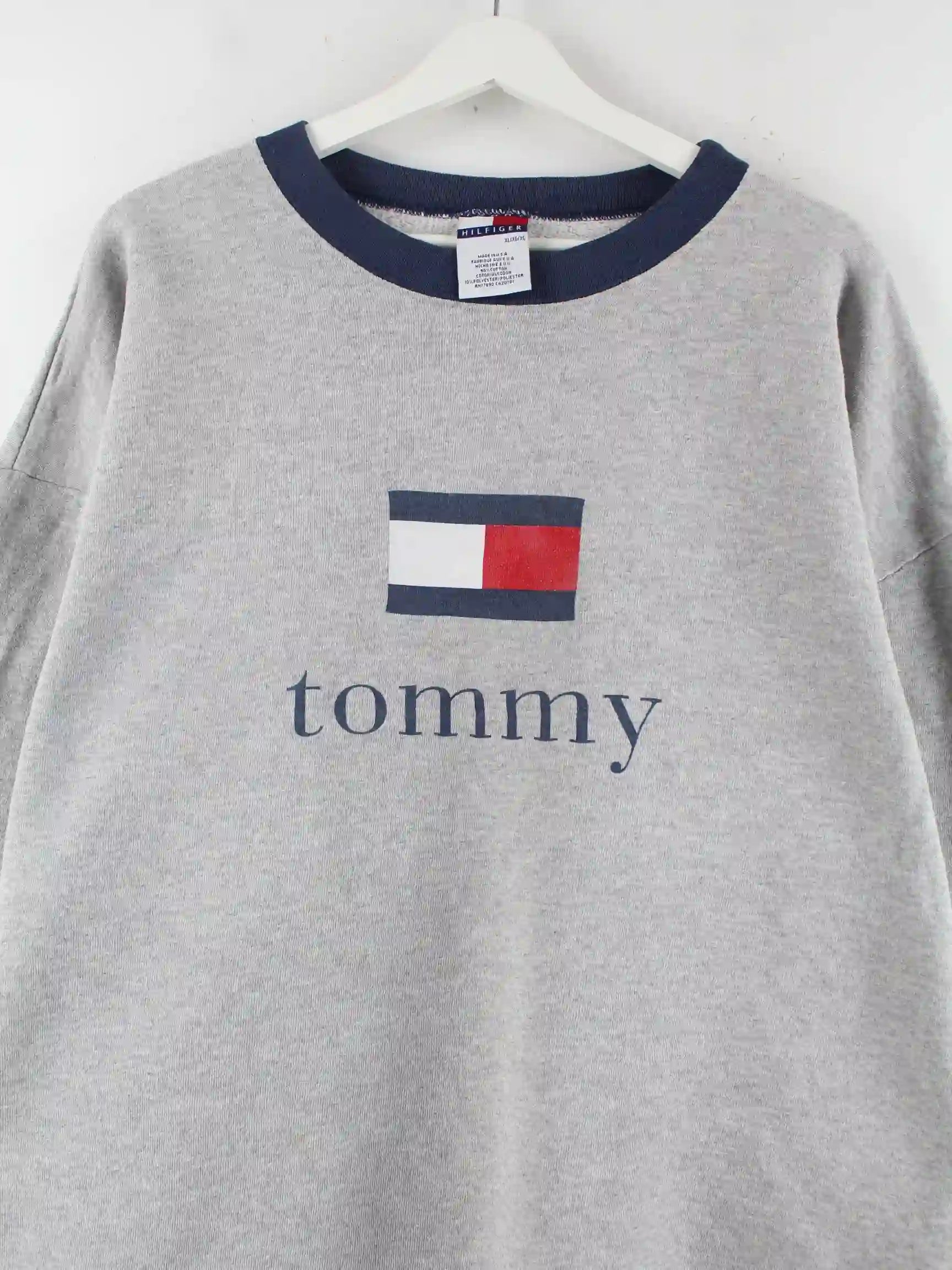 Sweater aus dem Hause Tommy Hilfiger in Größe XL. Er ist aus einer Baumwollmischung gefertigt und in Grau in Stock. Mit tollem 00s Print.