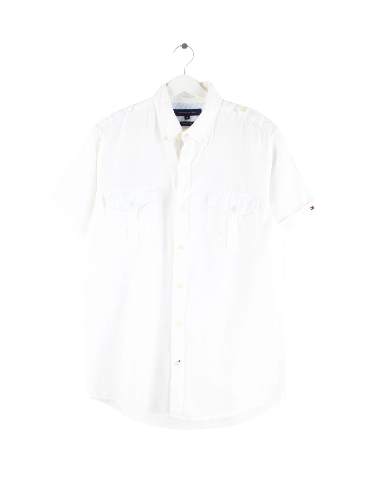 Weißes Freizeit Hemd der Marke Tommy Hilfiger in Größe M. Es ist aus Leinen gemacht und in sehr gutem Zustand zu haben.