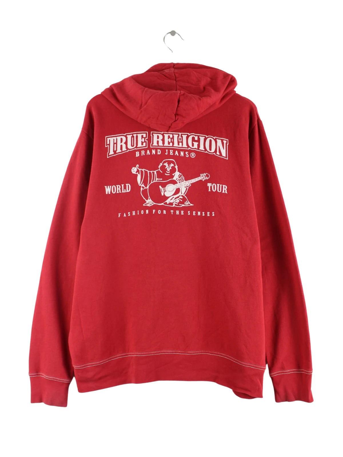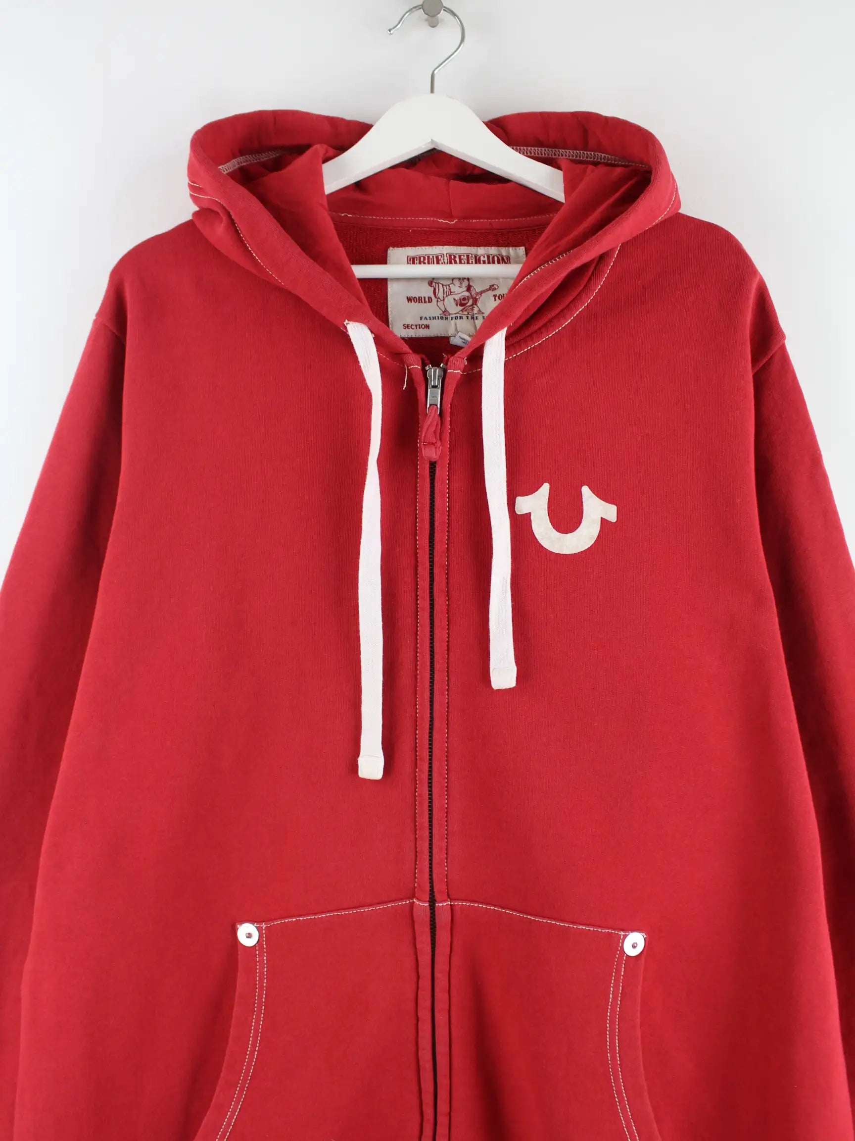 Hoodie von True Religion mit durchgehendem Reißverschluß in Größe XXL aus Anfang der 2000'er. Er ist aus einer Baumwollmischung hergestellt und in Rot auf Lager.