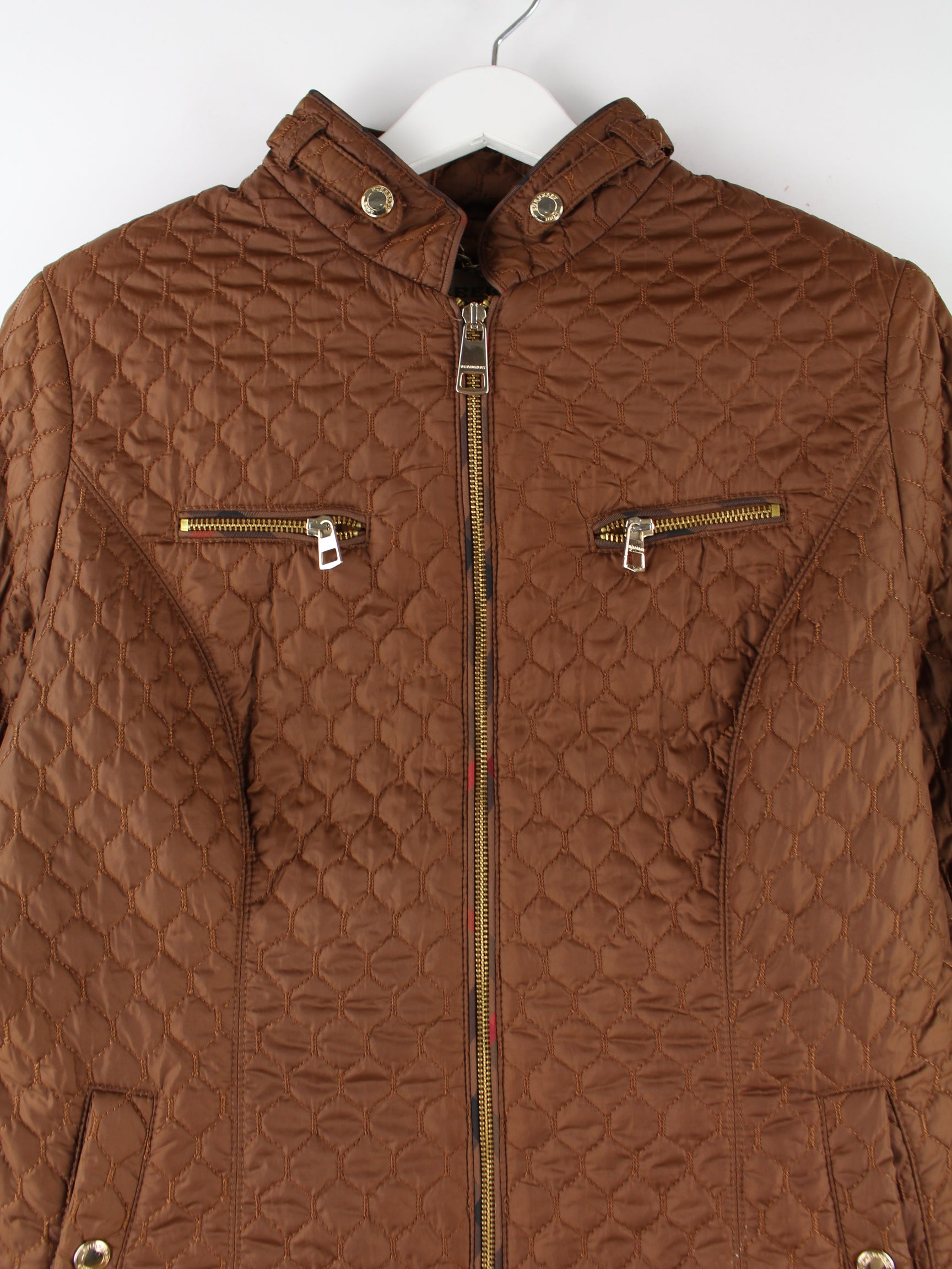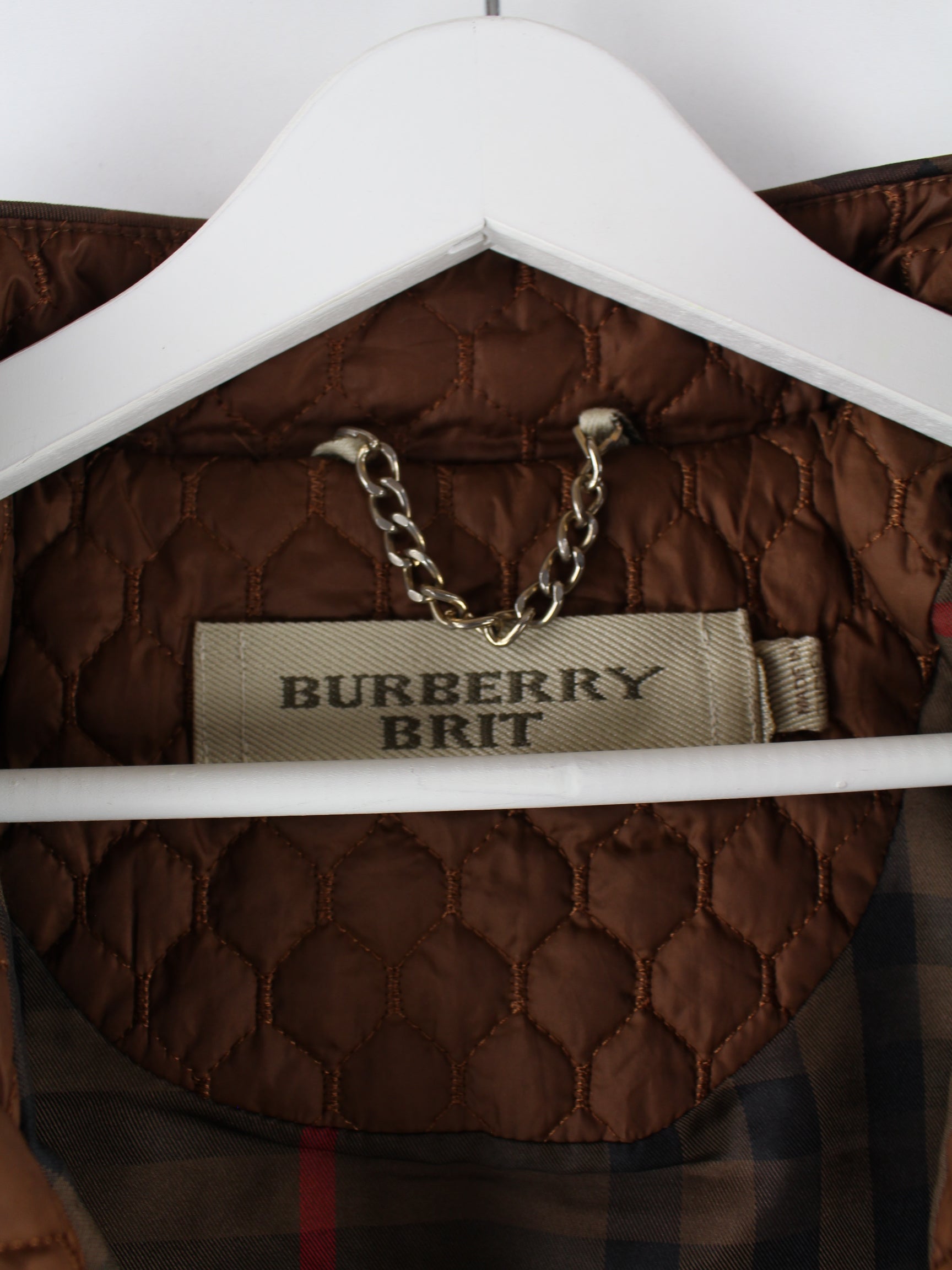 Braune Leichte Jacke der Marke Burberry in Größe L. Sie ist aus Synthetik und in gutem Zustand auf Lager.