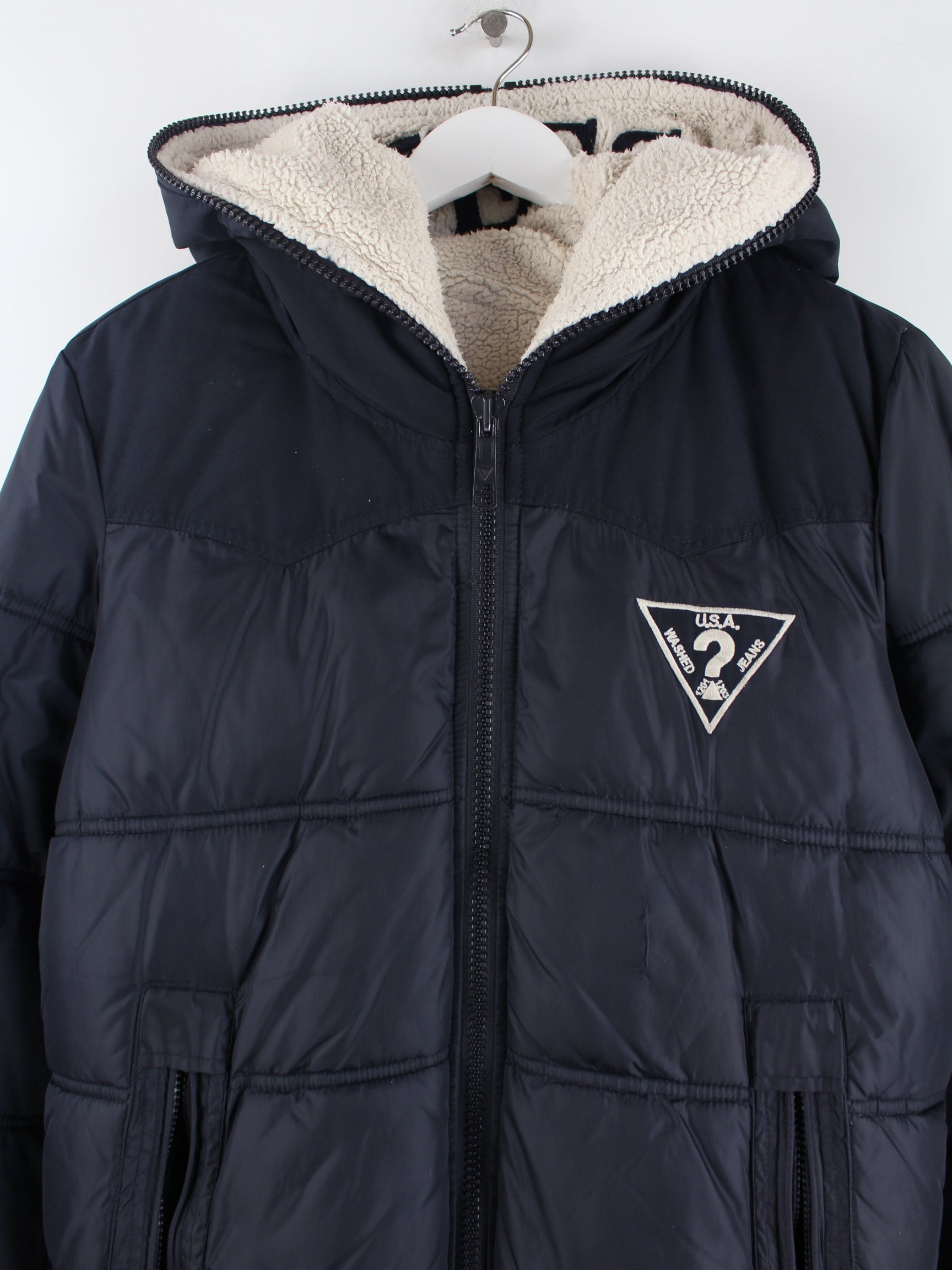 Jacke vom Label Guess in Größe M. Sie ist aus Synthetik gemacht und in Blau im Bestand.