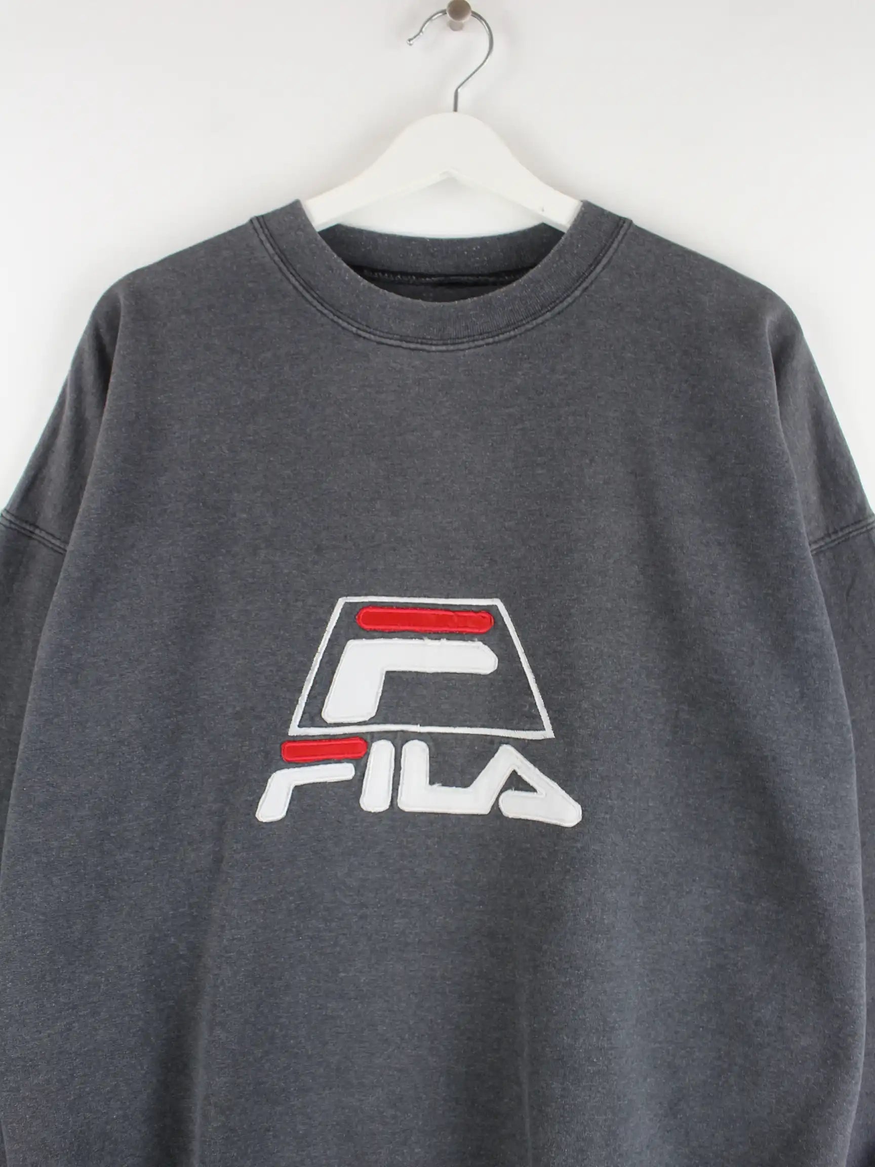 Grauer Sweater aus dem Hause Fila in Größe L. Er ist aus einer Baumwollmischung hergestellt. Den Zustand würden wir als 'In Ordnung' bezeichnen (vergl. Bilder).