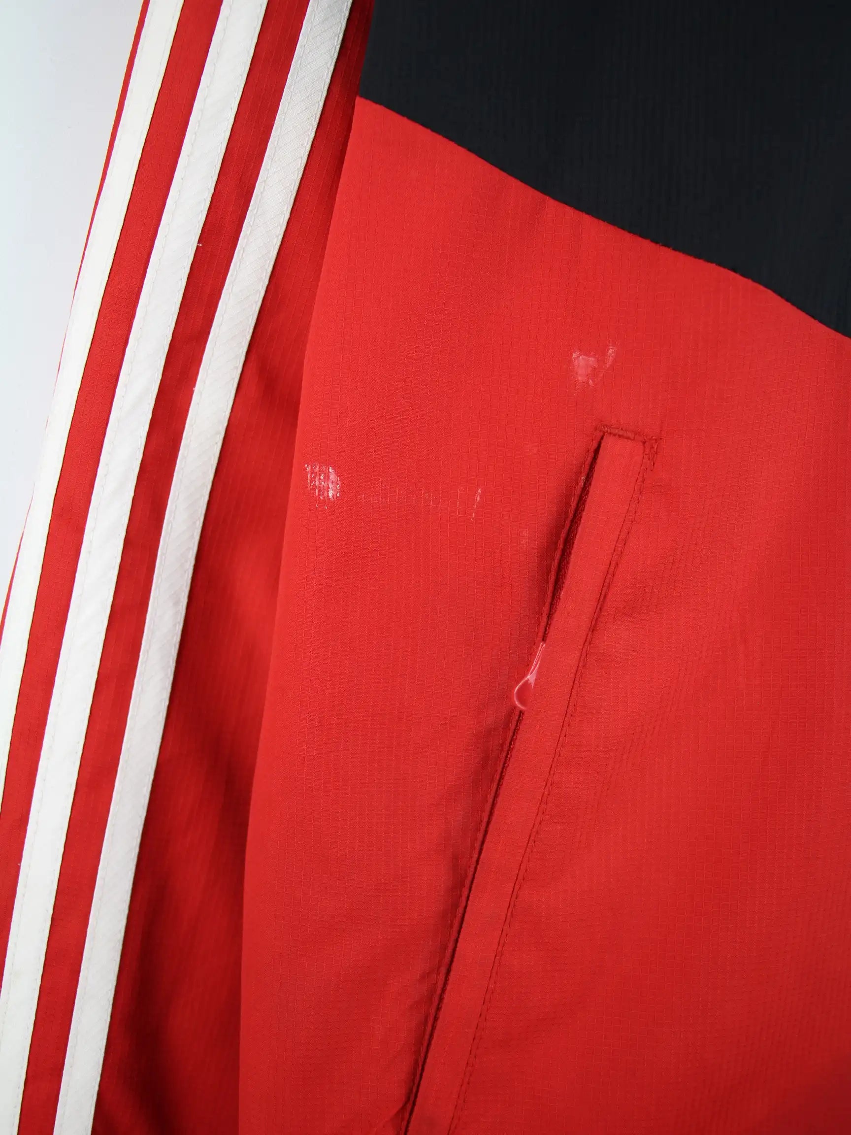 Leichte Jacke der Marke Adidas in Größe XL. Sie ist aus Synthetik produziert und in Rot zu bekommen.