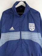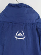 Blaue Trainingsjacke der Marke Adidas in Größe XL. Sie ist aus Synthetik gefertigt und in gutem Zustand bei uns vorrätig.
