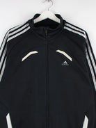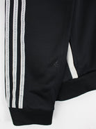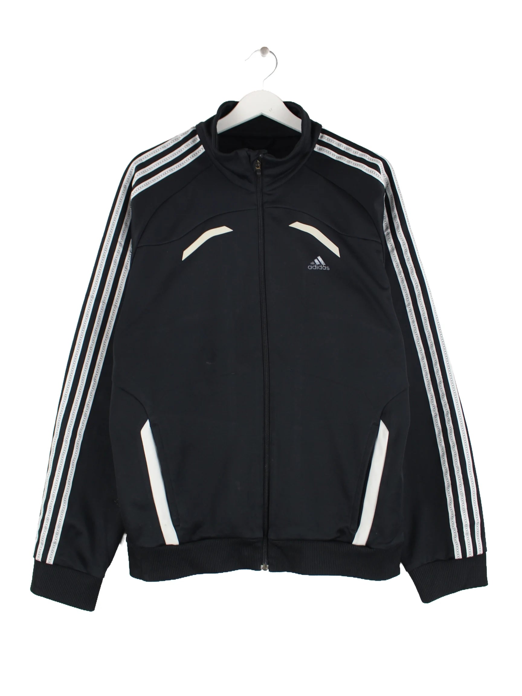 Schwarze Trainingsjacke vom Brand Adidas in Größe M. Sie ist aus Synthetik angefertigt. Den Zustand würden wir als 'In Ordnung' bezeichnen (vergl. Bilder).