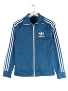 Trainingsjacke vom Brand Adidas in Größe XS. Sie ist aus Synthetik hergestellt und in Blau bei uns vorrätig.