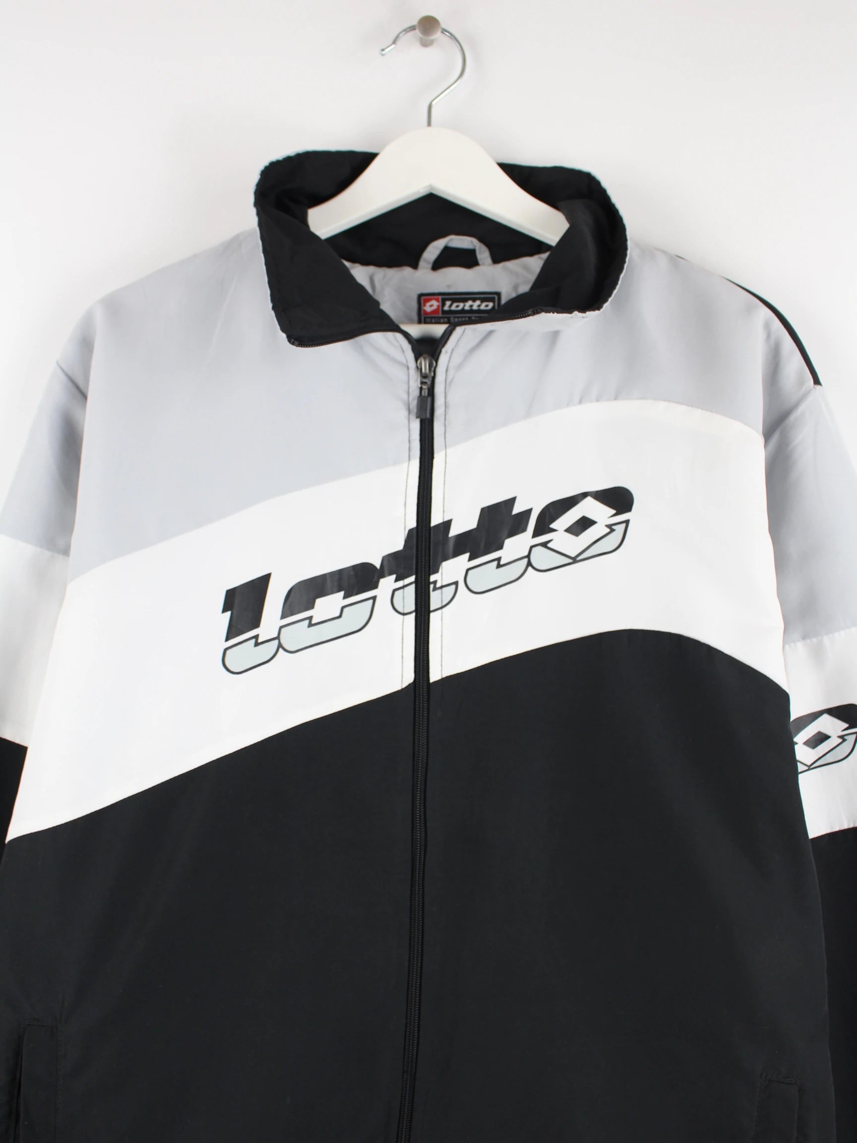 Trainingsjacke des Labels Lotto in Größe M. Sie ist aus Synthetik gefertigt und in Schwarz bei uns zu bekommen. Mit tollem Logo Print.