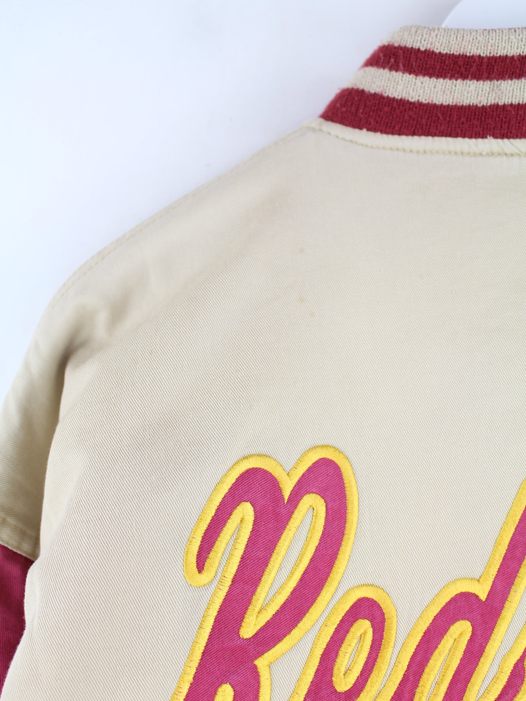 Eine College Jacke ist wirklich das Vintage Piece, in das sich jeder Vintage Fan direkt verliebt! Sie ist mit eines der heftigsten Vintage Pieces und daher in der Szene oft ein Sammlerstück, das gut und gerne auch mal etwas teurer sein kann und seinen Preis hat. Besonders faszinierend an einer College Jacke sind die vielen feinen Details der aufgestickten Patches und die super hochwertige Vintage Qualität. Zudem gibt es sie wirklich von einer Vielzahl an Marken wie beispielsweise Universities, College Teams, NFL Teams, NHL Teams, NBA Teams und MLB Teams, die alle auch bei uns im Markenregister zu finden sind! Vielleicht läuft Dir bei einem unserer Drops dieses seltene und kranke Piece für Deine Sammlung also einmal über den Weg - ansonsten bieten wir manchmal Back To School Mottodrops - und was wäre ein Back To School Mottodrop ohne College Jacken? Lohnt sich also vorbeizuschauen!