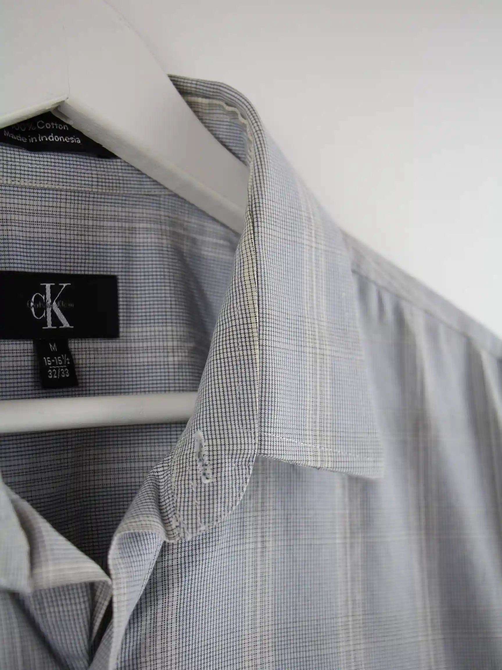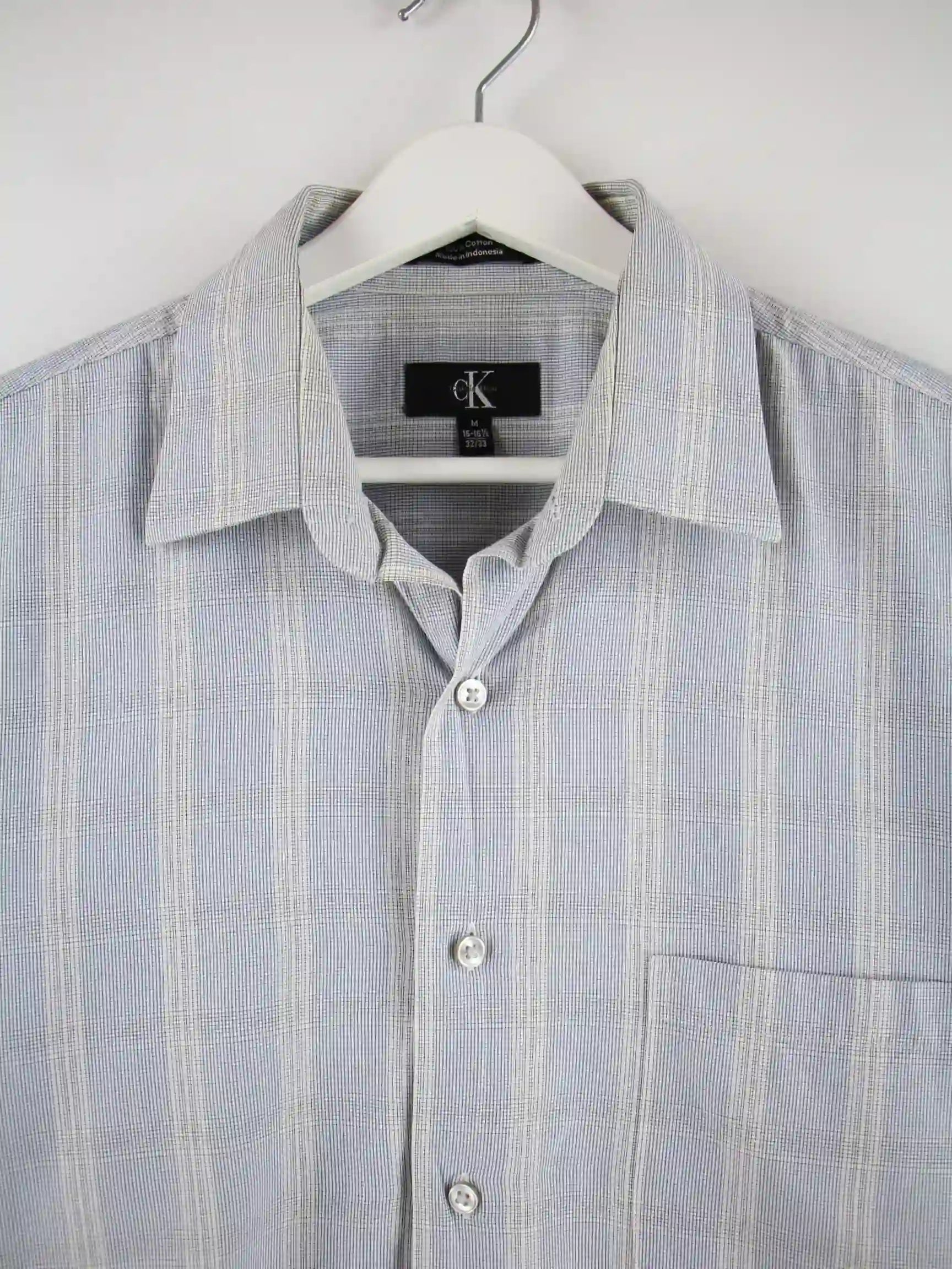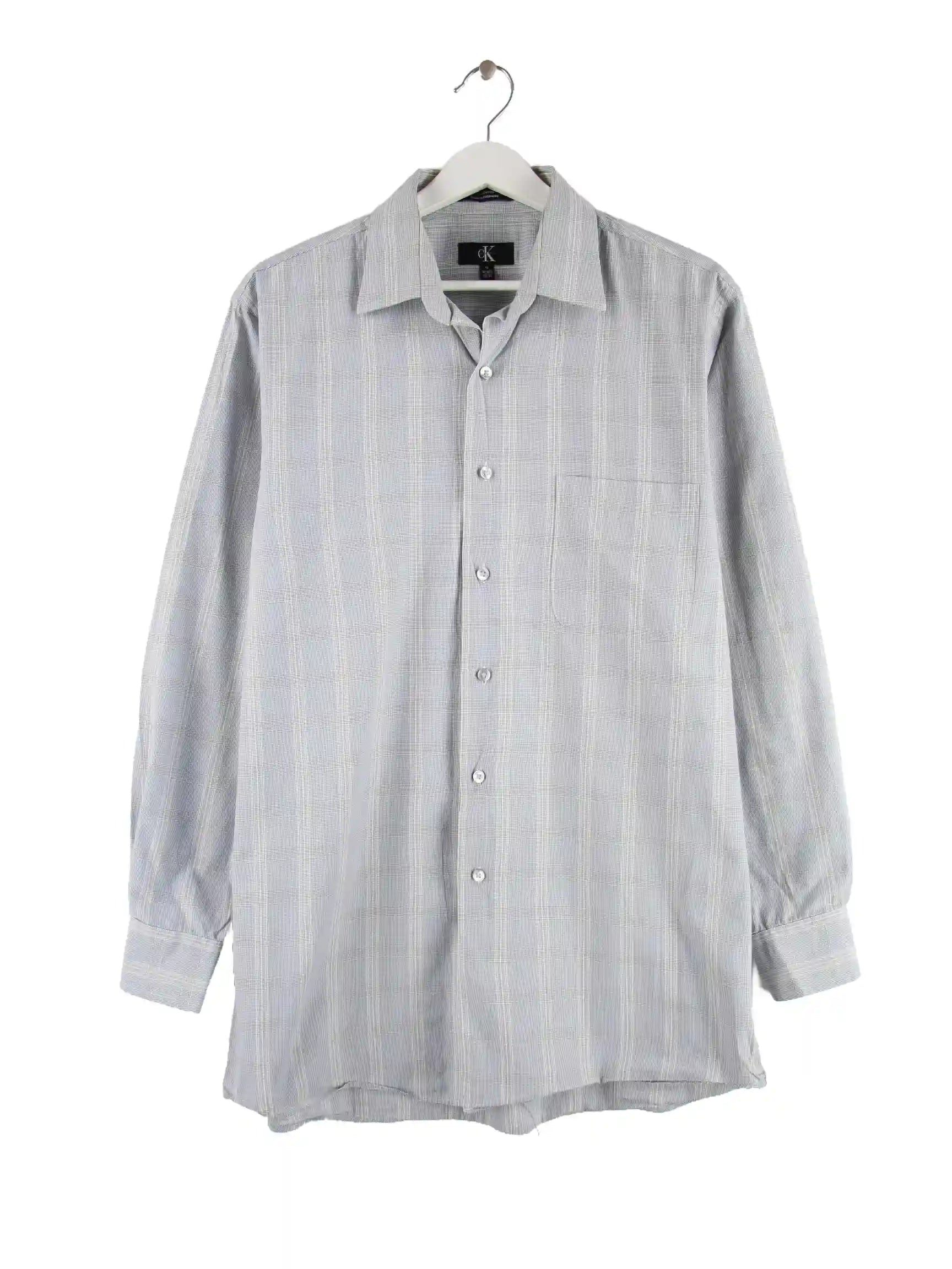Graues Hemd der Brand Calvin Klein in Größe M. Es ist aus Baumwolle produziert und in gutem Zustand bei uns vorrätig.