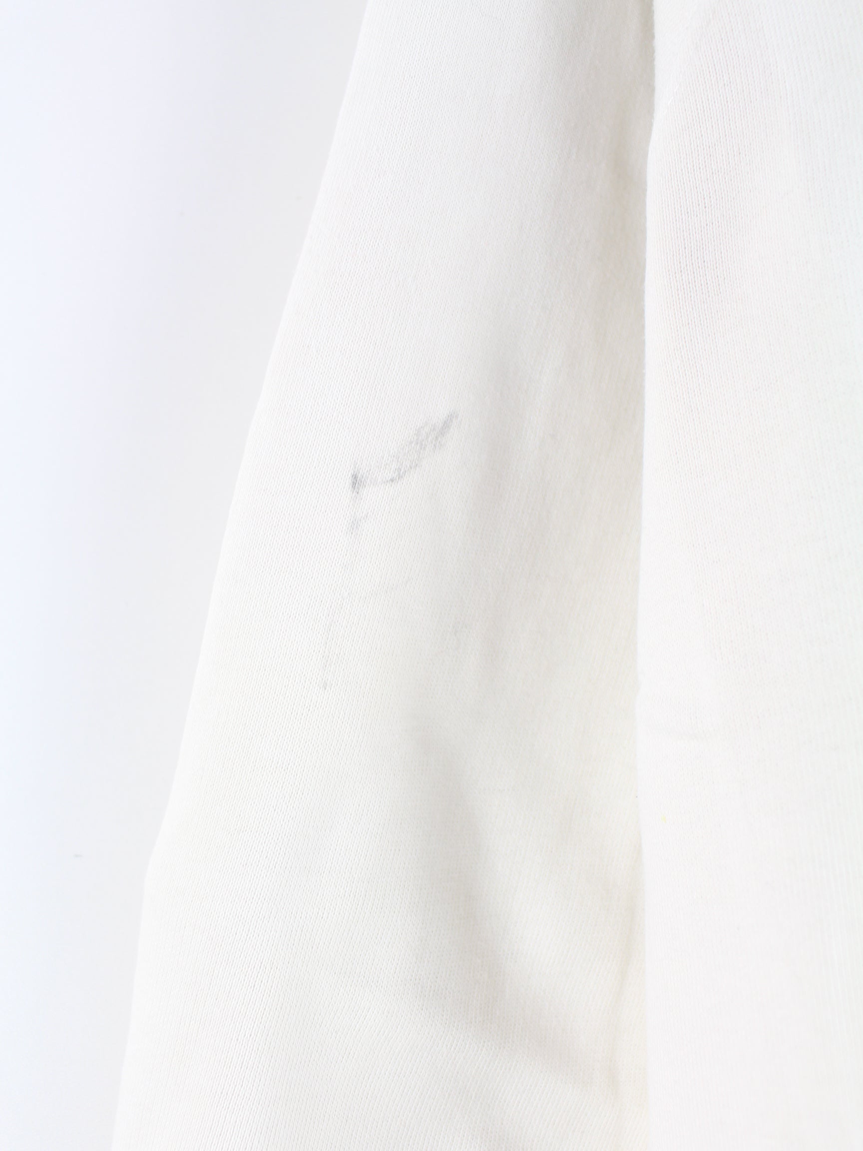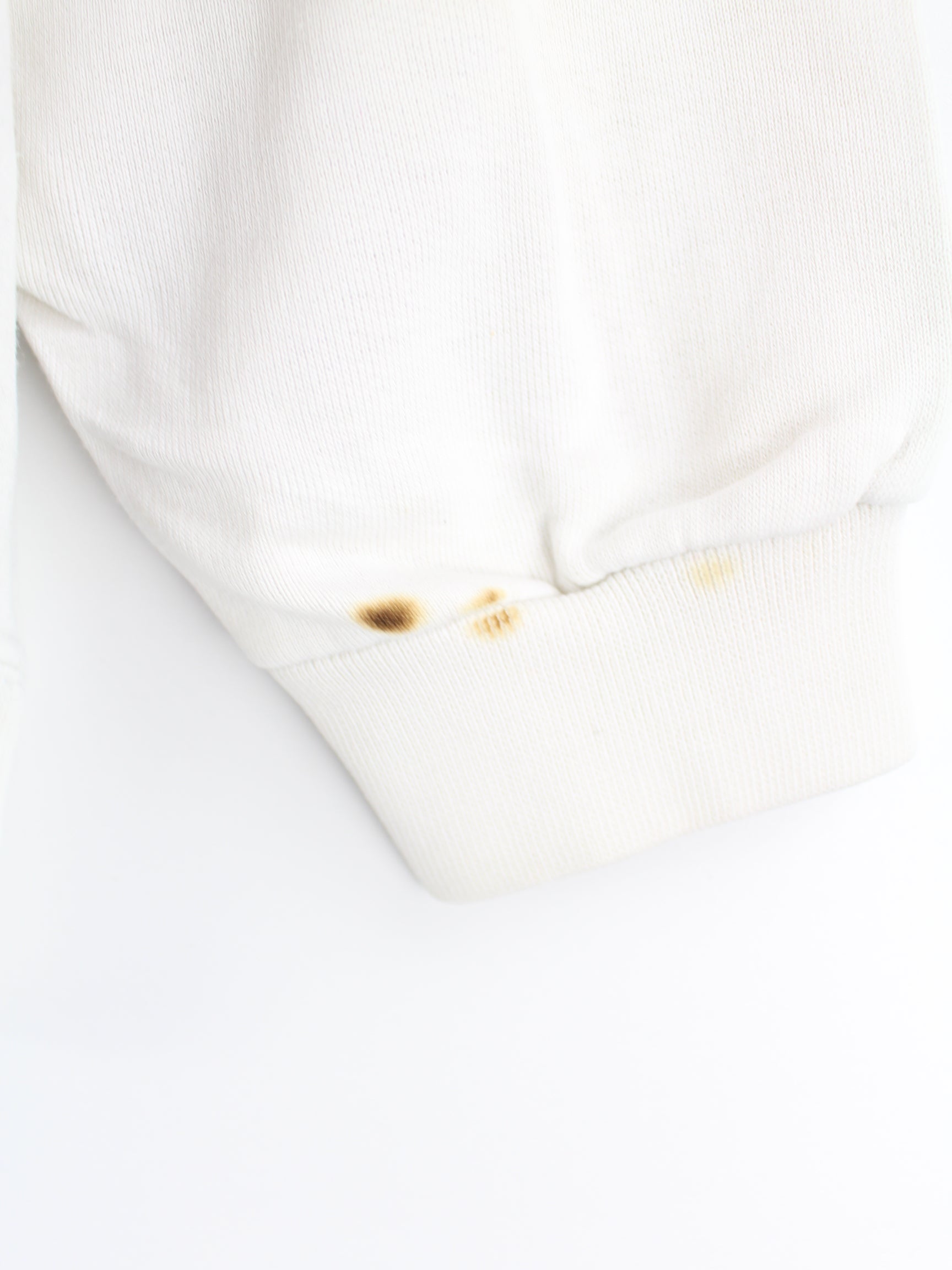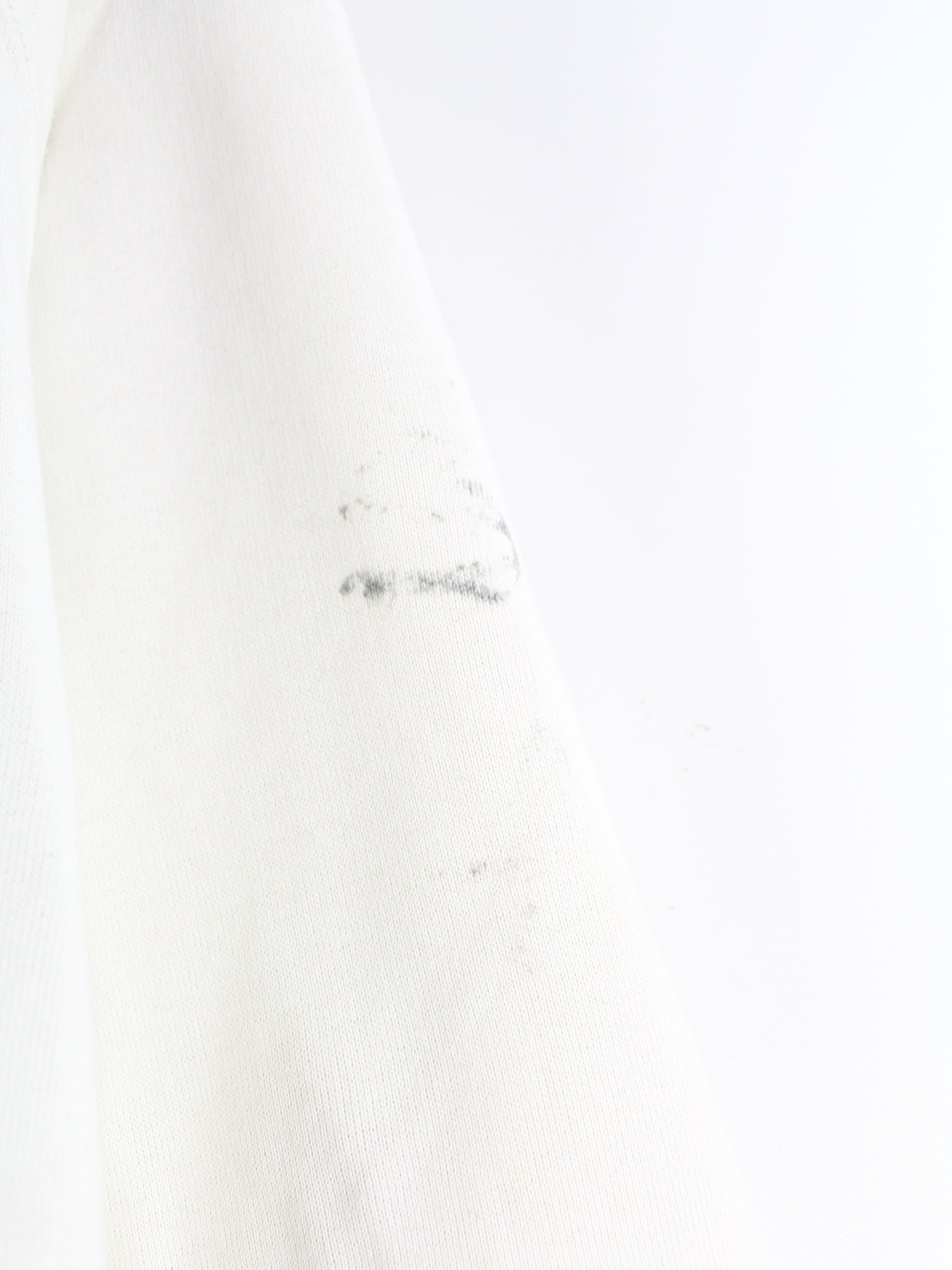 Hoodie der Marke Champion mit Stick in Größe M. Er ist aus einer Baumwollmischung produziert und in Weiß in Stock.