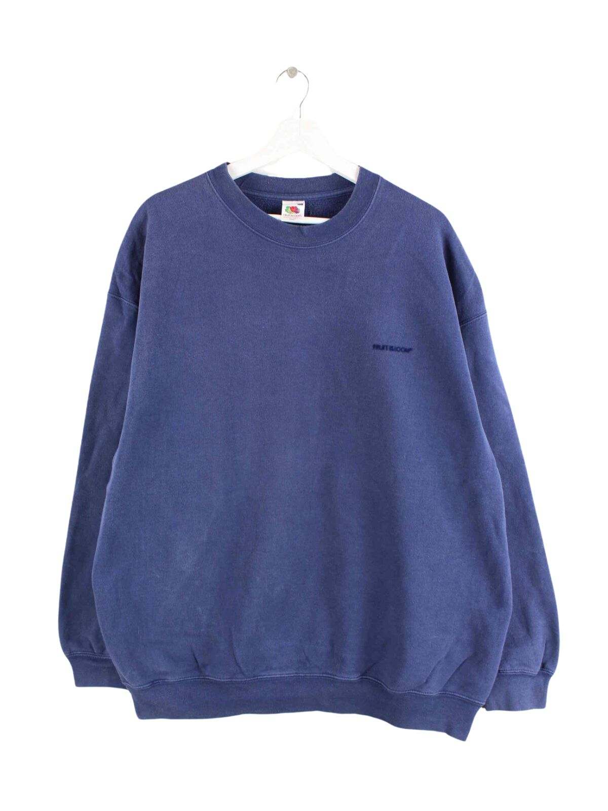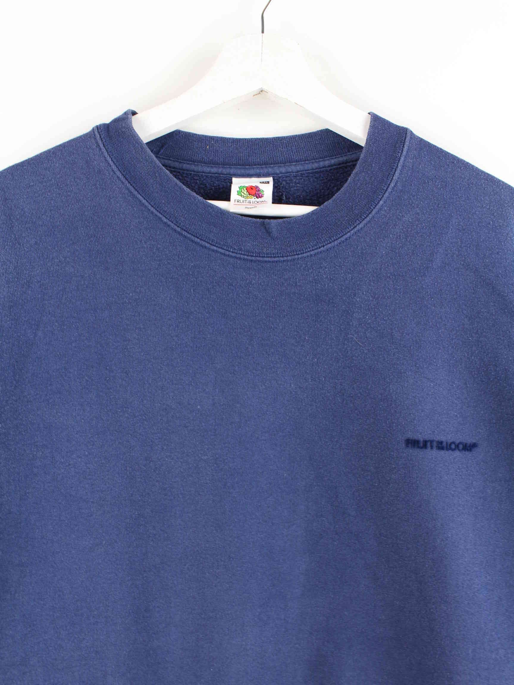 Blauer Sweater vom Label Fruit of the Loom in Größe XXL. Er ist aus einer Baumwollmischung produziert und in gutem Zustand bei uns zu bekommen.