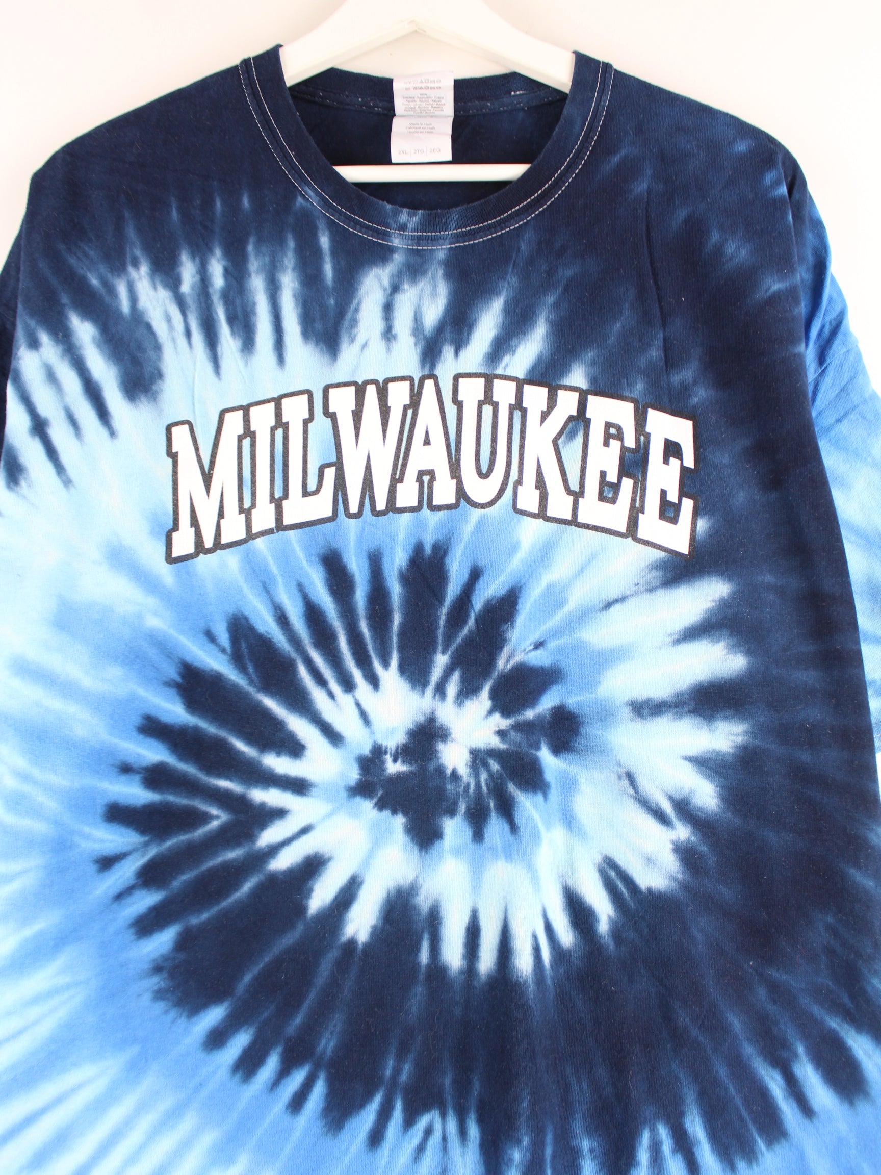 Gildan Milwaukee Print Tie Dye T-Shirt Blau XXL