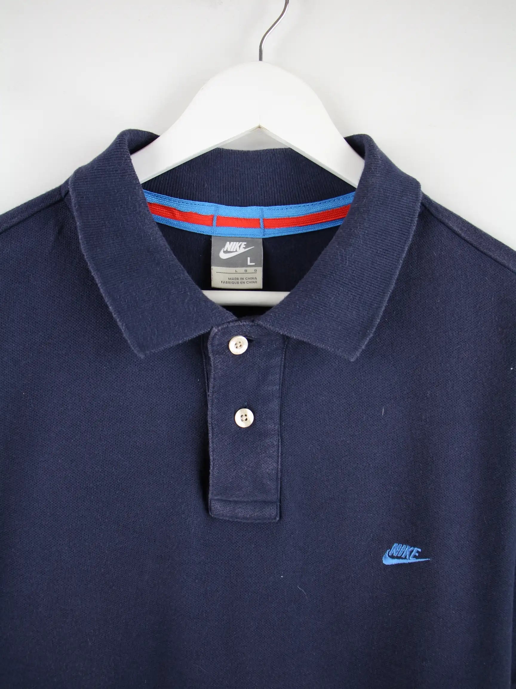 Blaues Poloshirt der Brand Nike in Größe L. Es ist aus Baumwolle produziert und in gutem Zustand im Angebot.