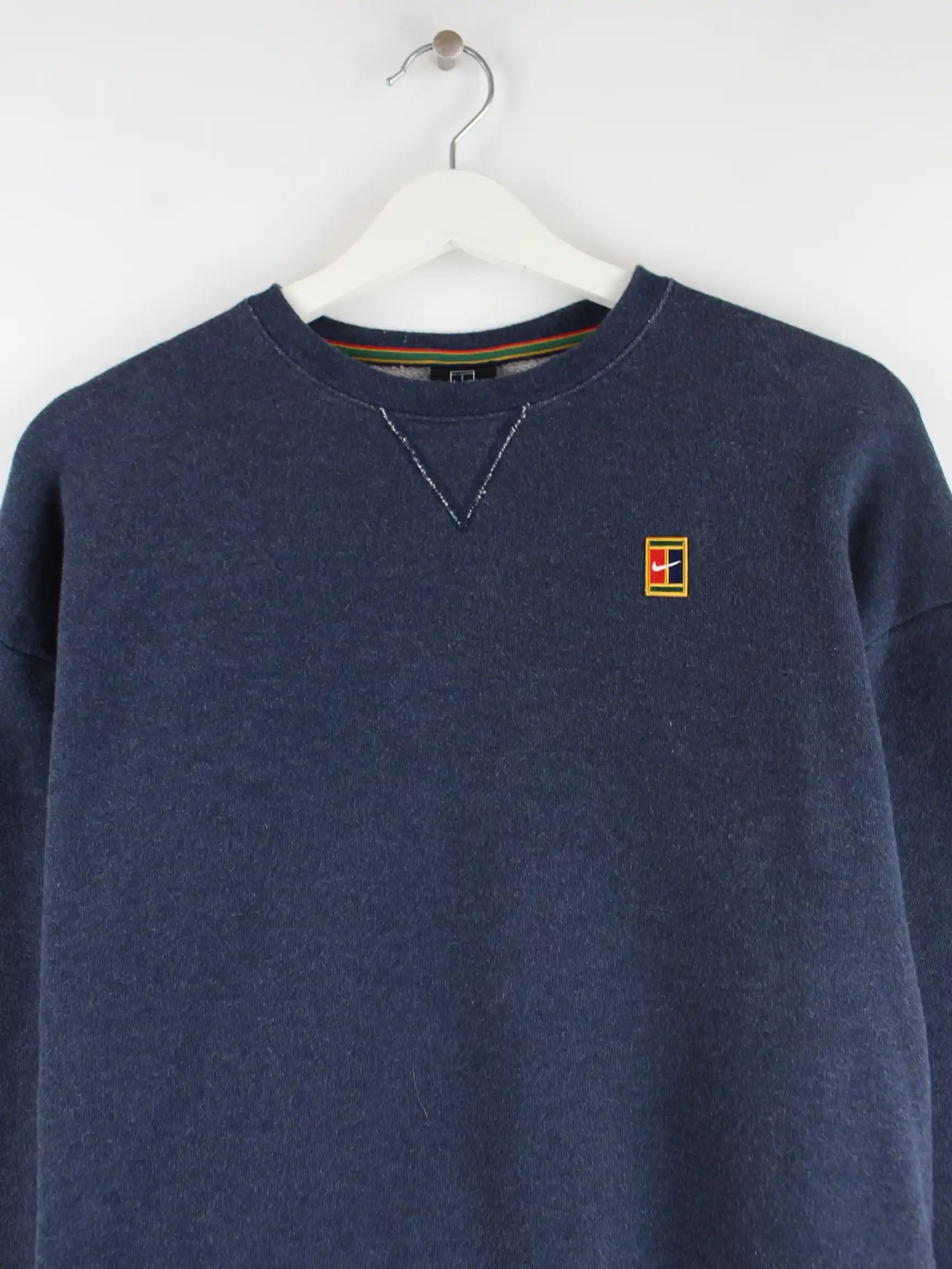 Blauer Sweater aus dem Hause Nike in Größe M. Er ist aus einer Baumwollmischung gemacht und in sehr gutem Zustand bei uns zu bekommen.
