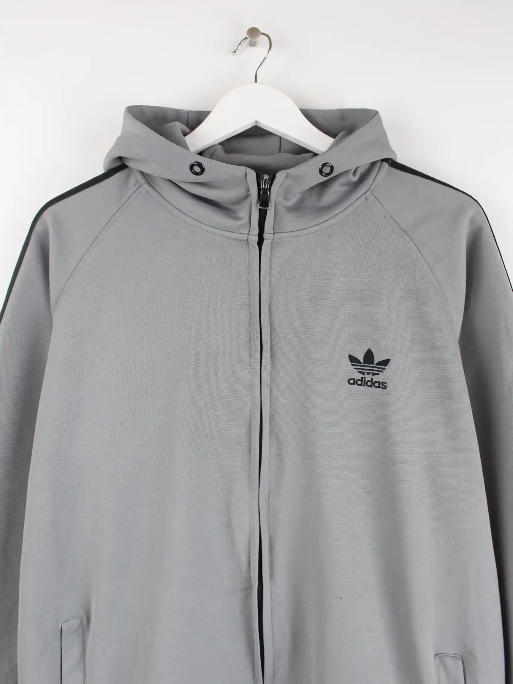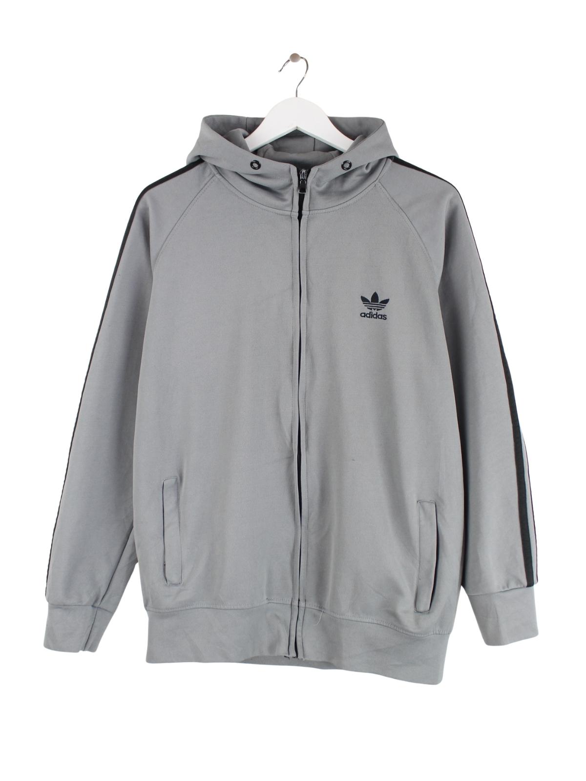 Hoodie vom Brand Adidas mit durchgehendem Reißverschluß in Größe L. Er ist aus Synthetik gefertigt und in Grau vorrätig.
