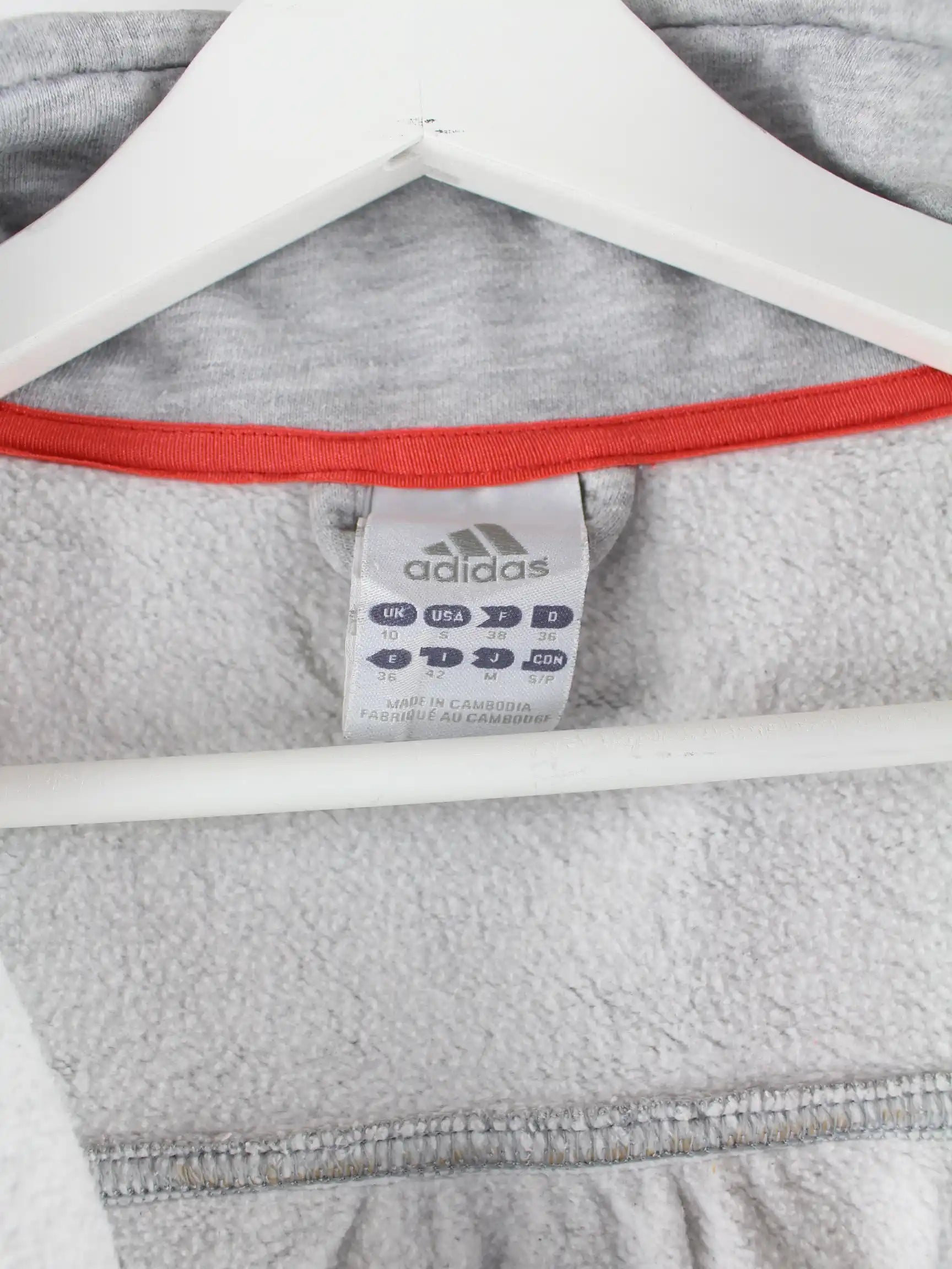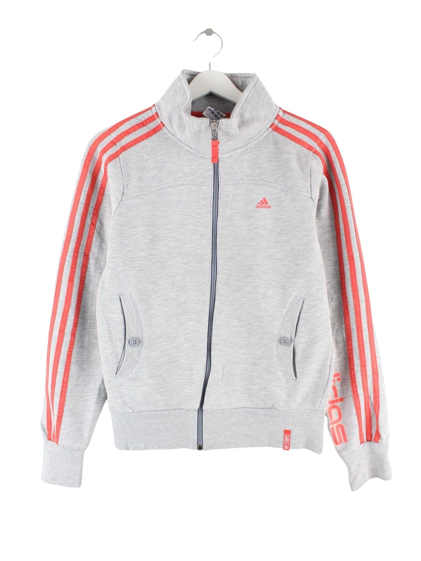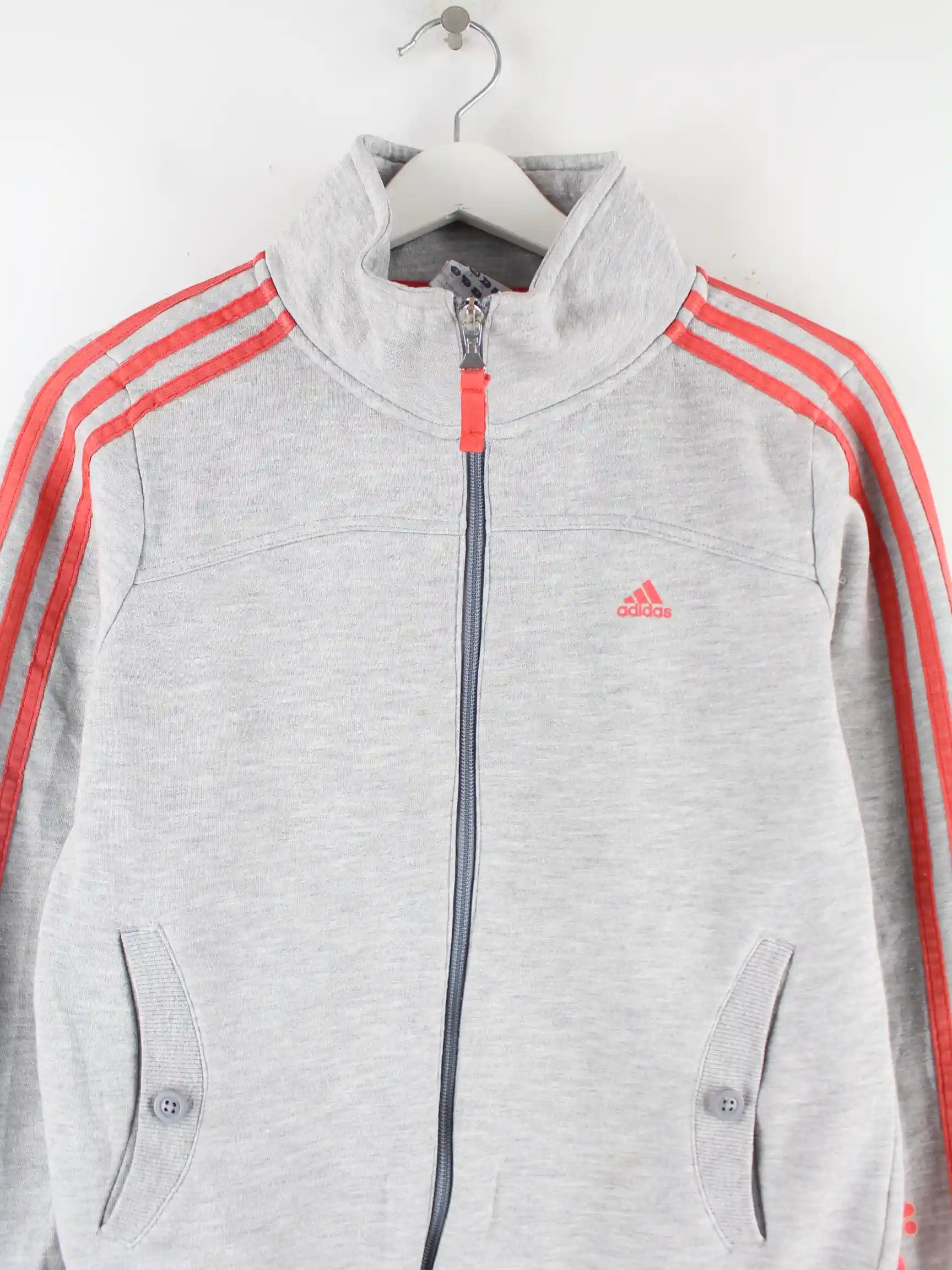 Sweatjacke vom Brand Adidas in Größe S. Sie ist aus einer Baumwollmischung und in Grau vorrätig.