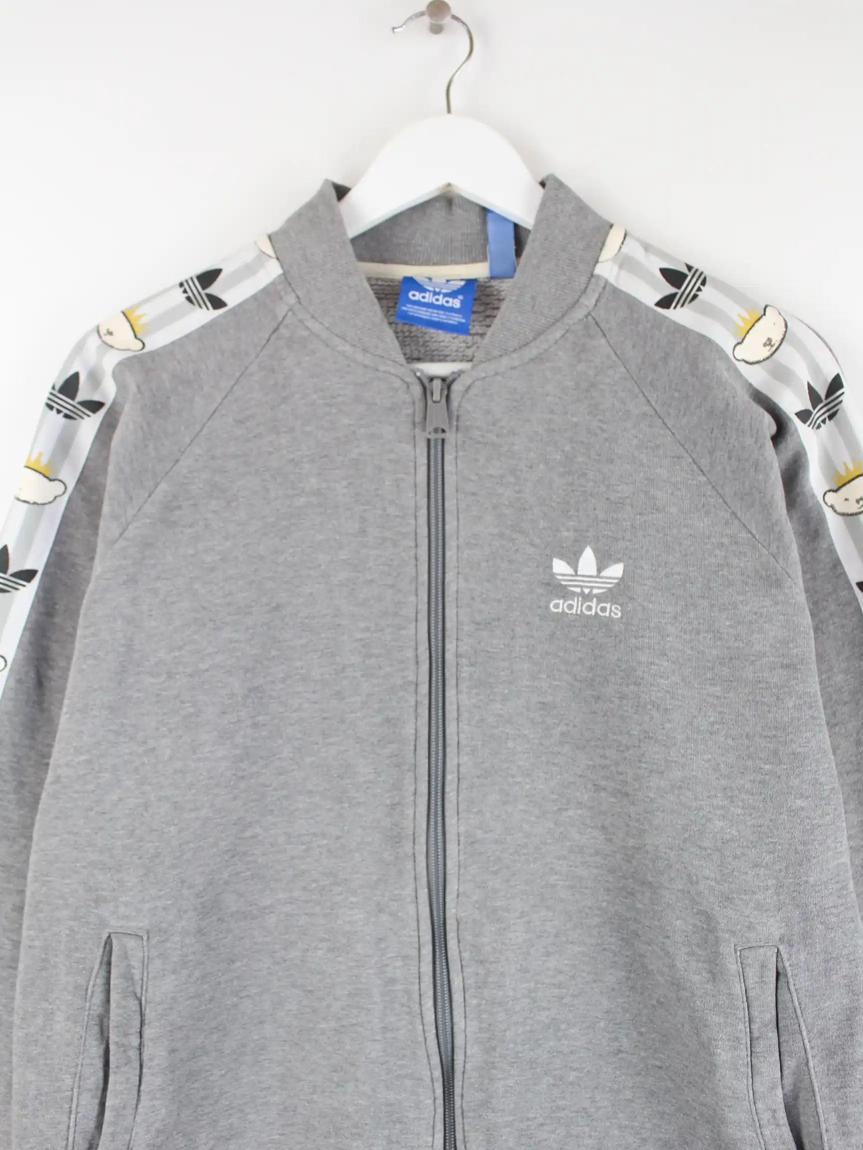 Sweatjacke von Adidas in Größe L. Sie ist aus einer Baumwollmischung gefertigt und in Grau auf Lager.