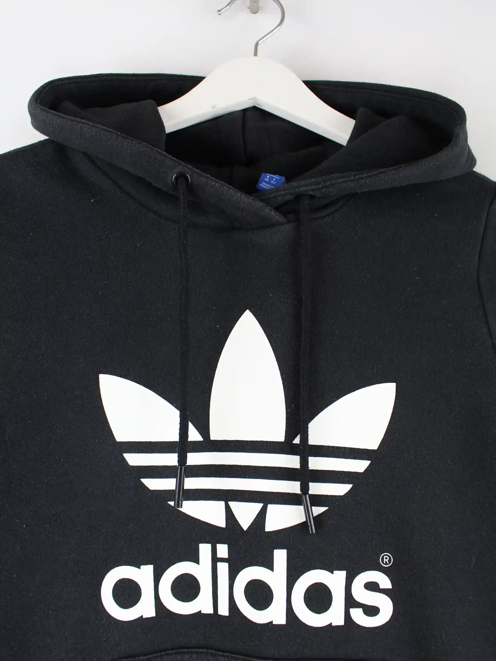 Hoodie des Labels Adidas in Größe S. Er ist aus einer Baumwollmischung hergestellt und in Schwarz im Bestand.