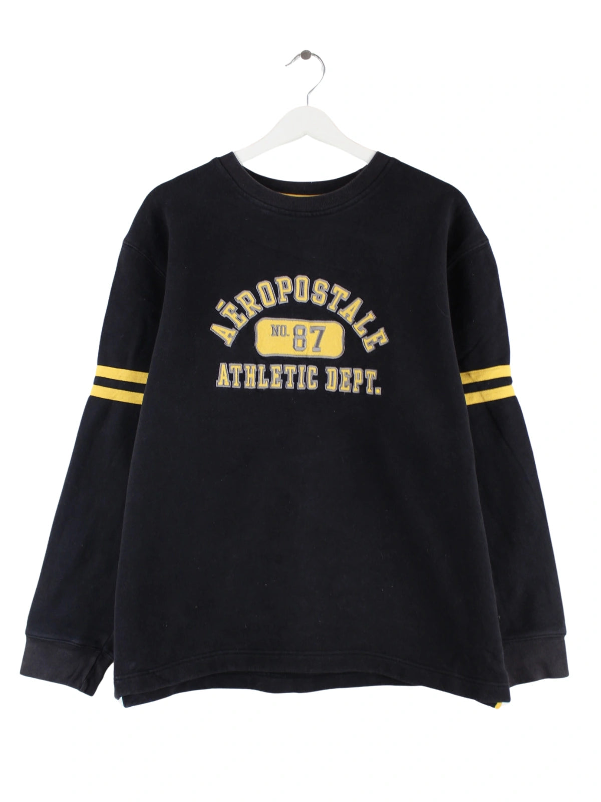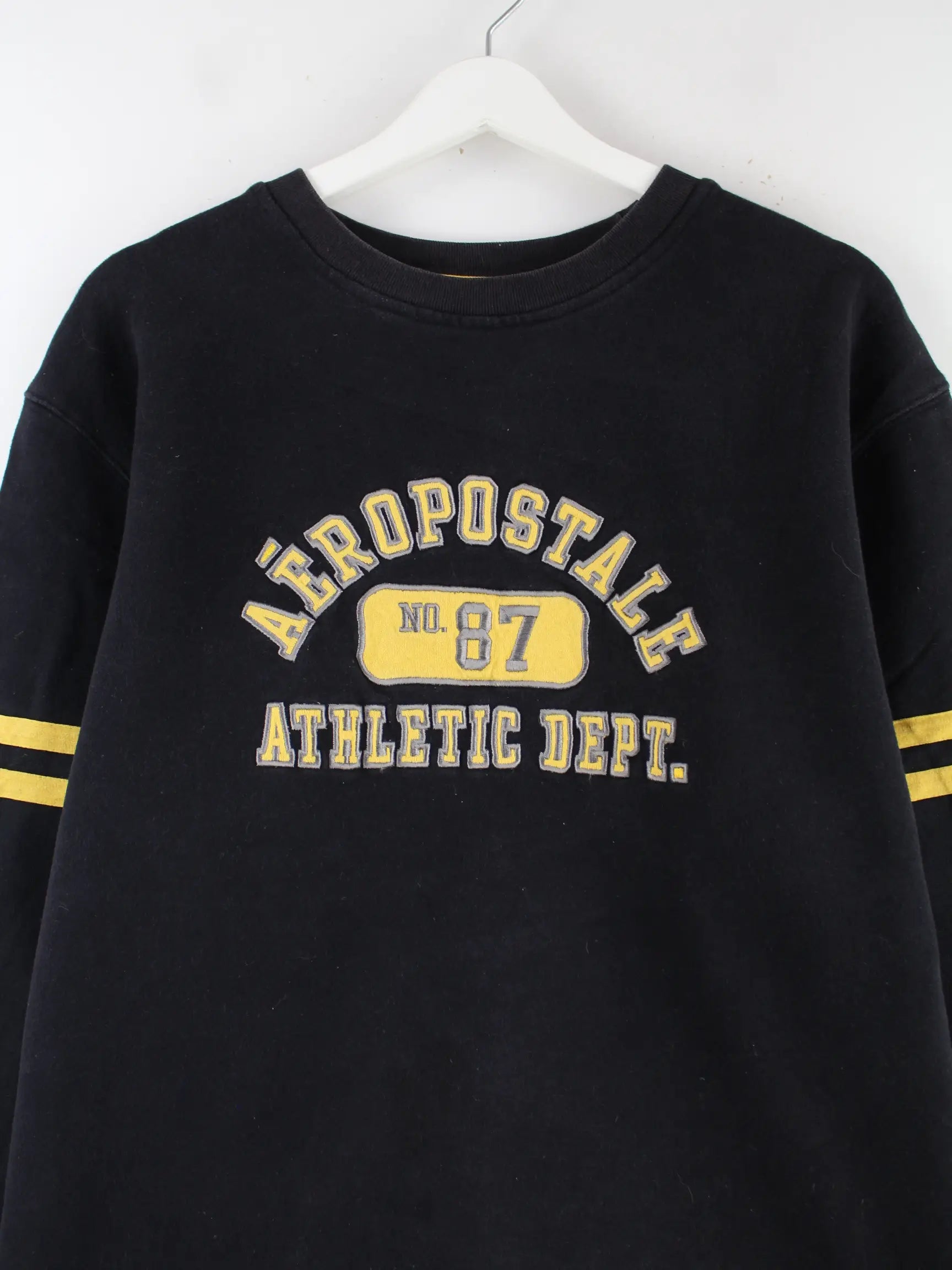 Schwarzer Sweater mit gesticktem Logo von Aeropostale in Größe L. Er ist aus einer Baumwollmischung angefertigt und in gutem Zustand im Bestand.
