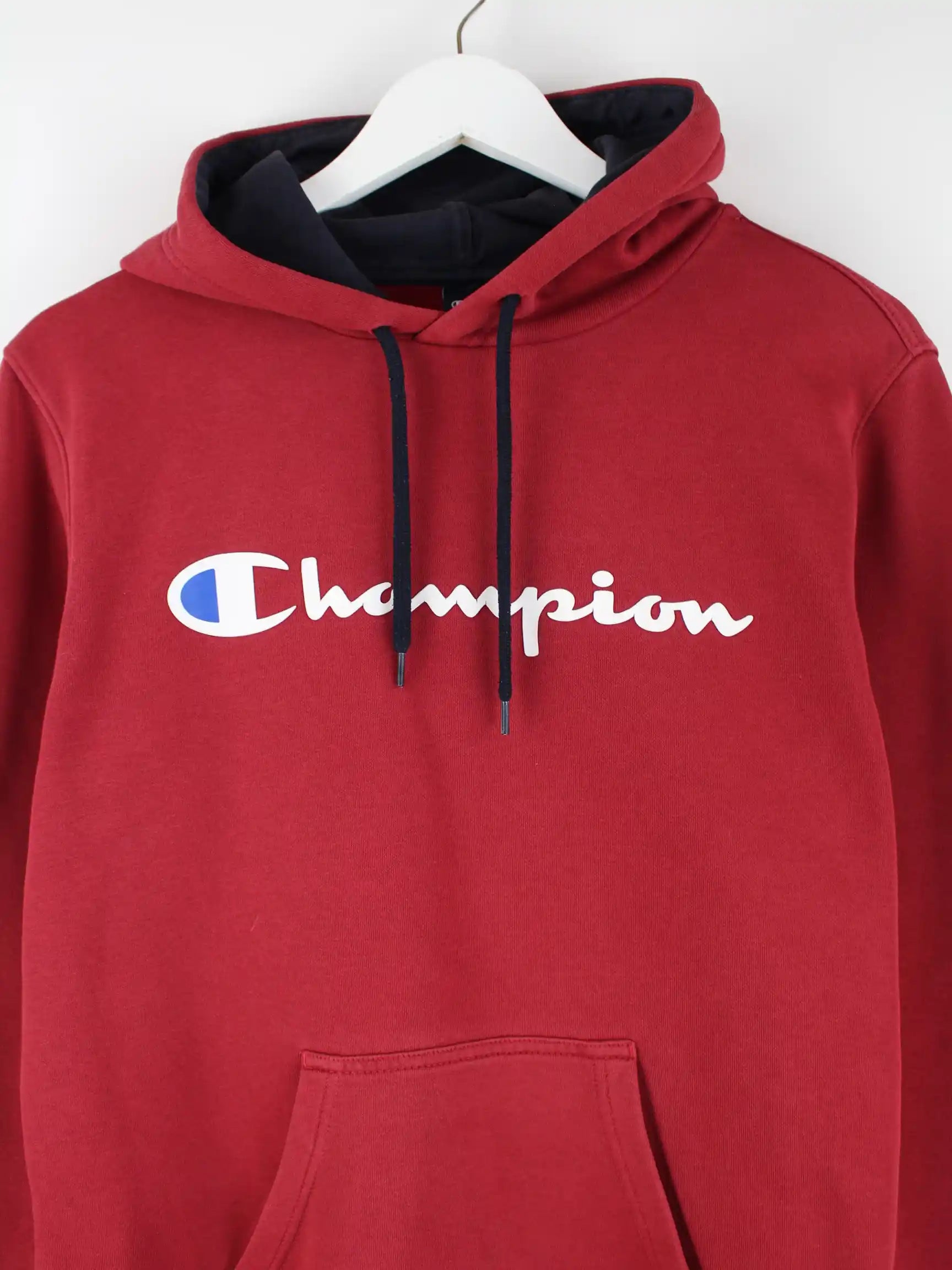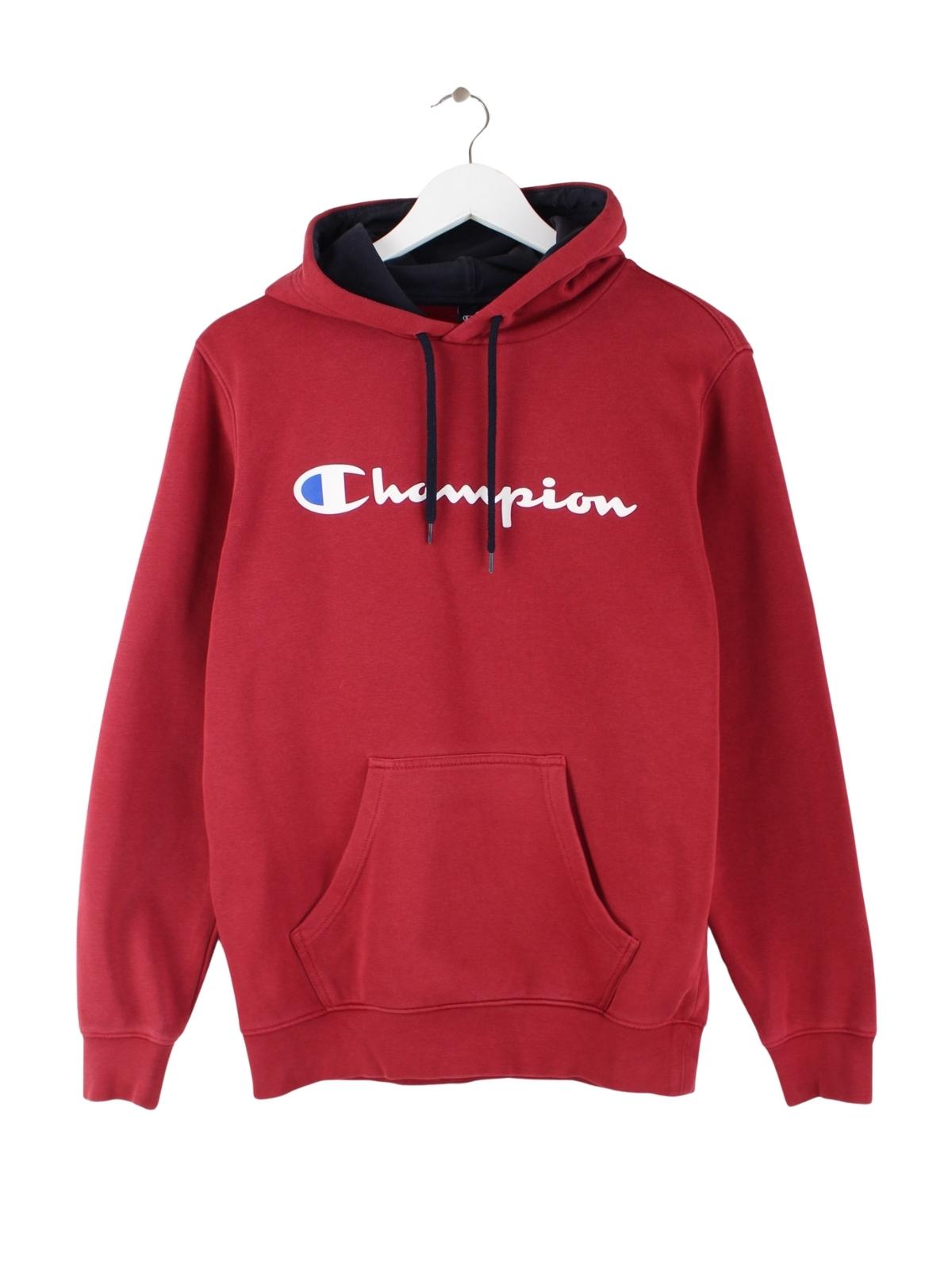 Roter Hoodie vom Label Champion in Größe S. Er ist aus einer Baumwollmischung und in sehr gutem Zustand zu haben. Mit schönem Logo Print.