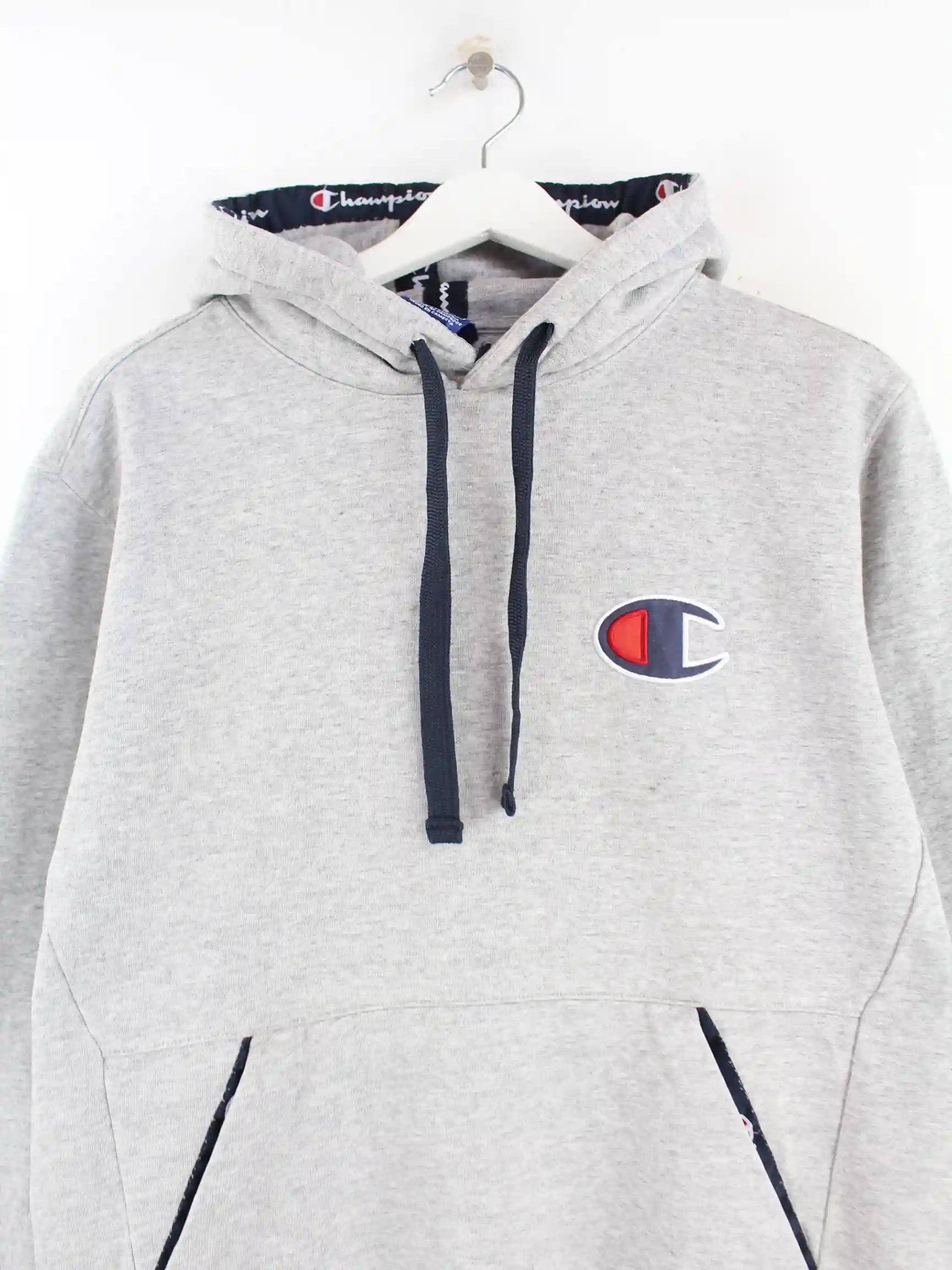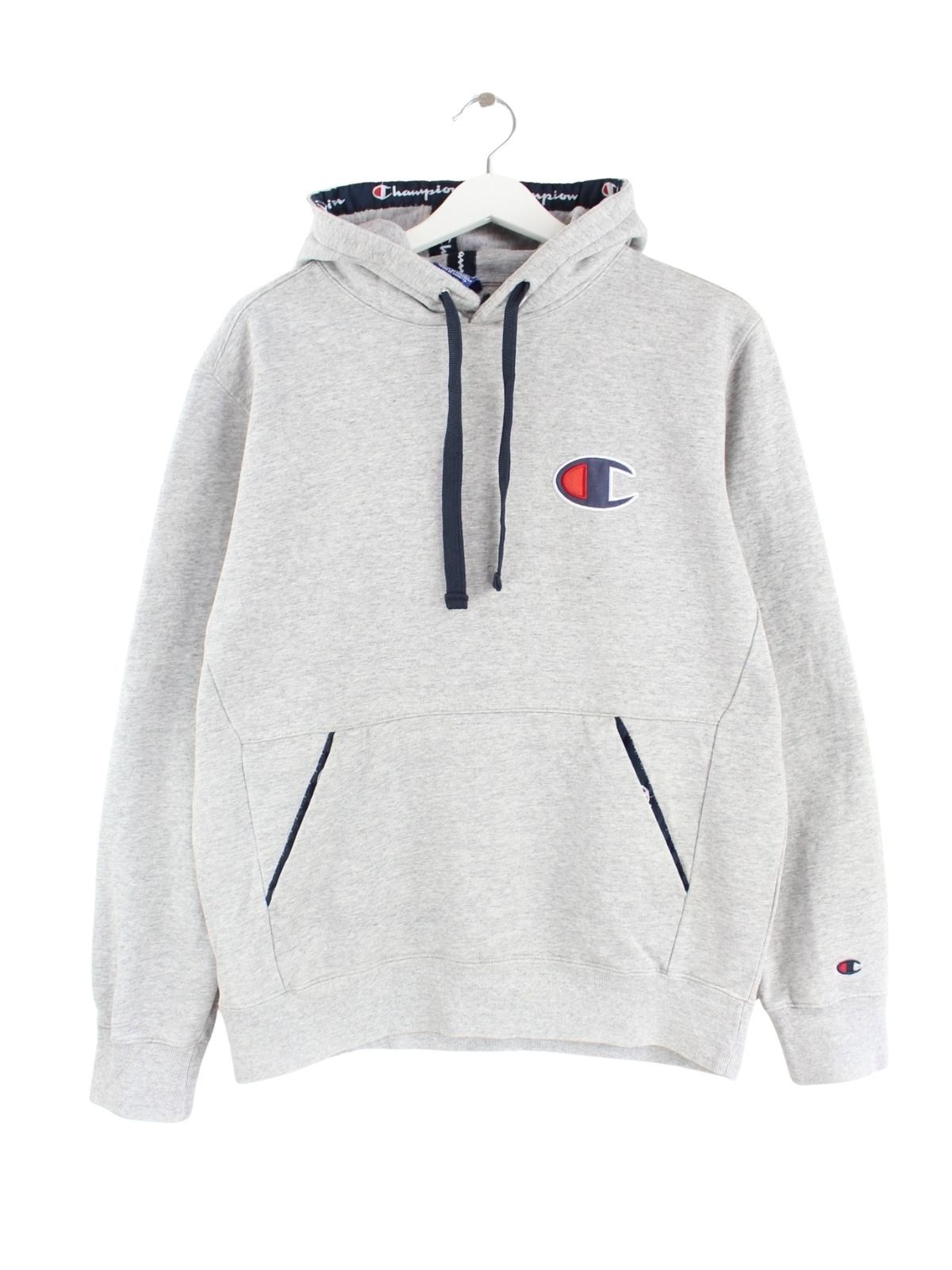 Hoodie vom Label Champion in Größe L. Er ist aus einer Baumwollmischung gefertigt und in Grau lieferbar.