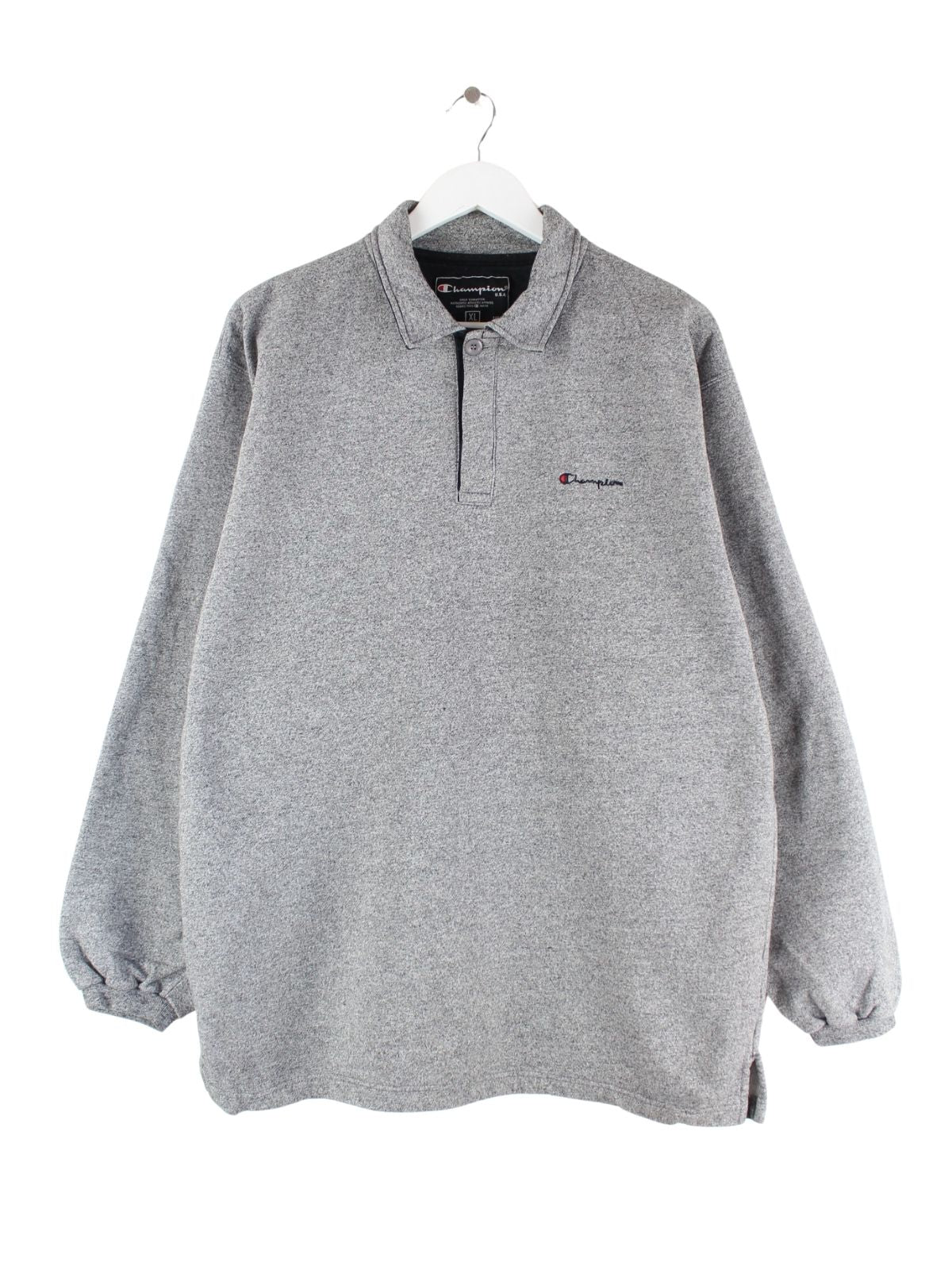 Sweater der Marke Champion in Größe XL. Er ist aus einer Baumwollmischung und in Grau im Bestand.