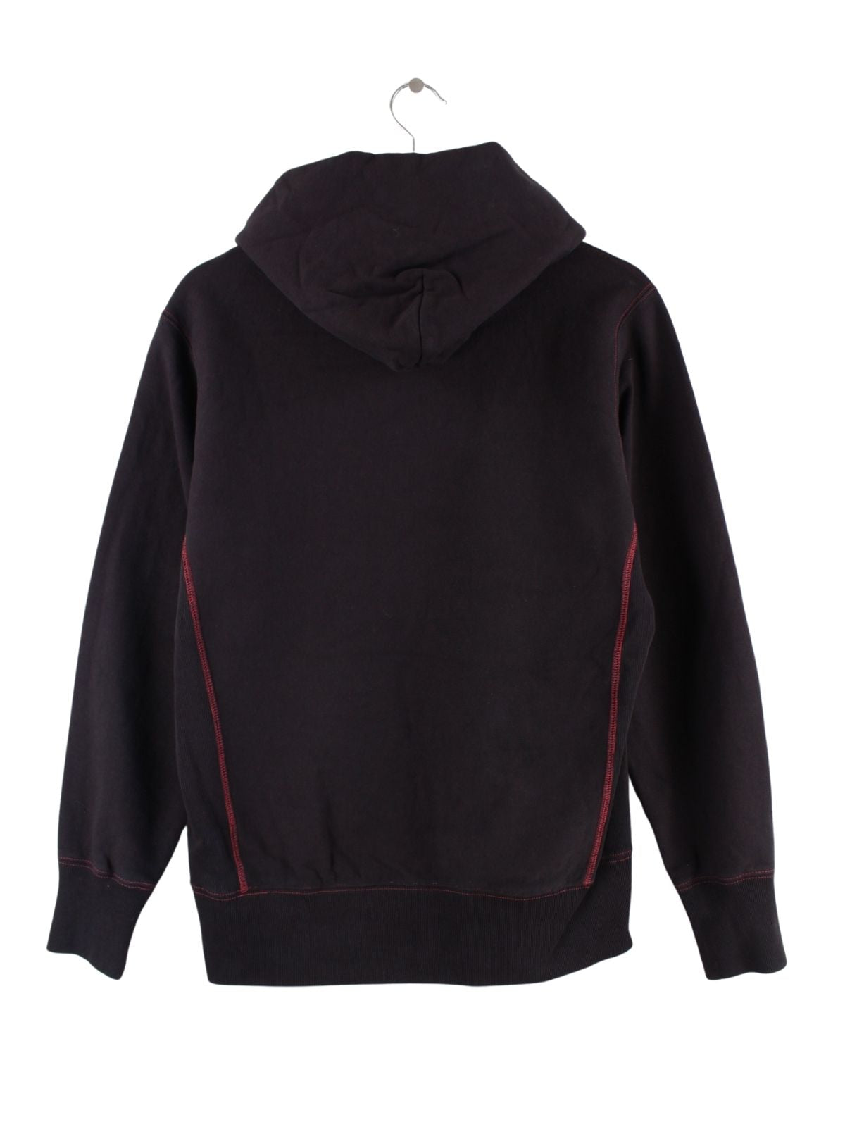 Lilafarbener Hoodie mit gestickten Motiven vom Label Champion in Größe L. Er ist aus einer Baumwollmischung angefertigt und in sehr gutem Zustand auf Lager.