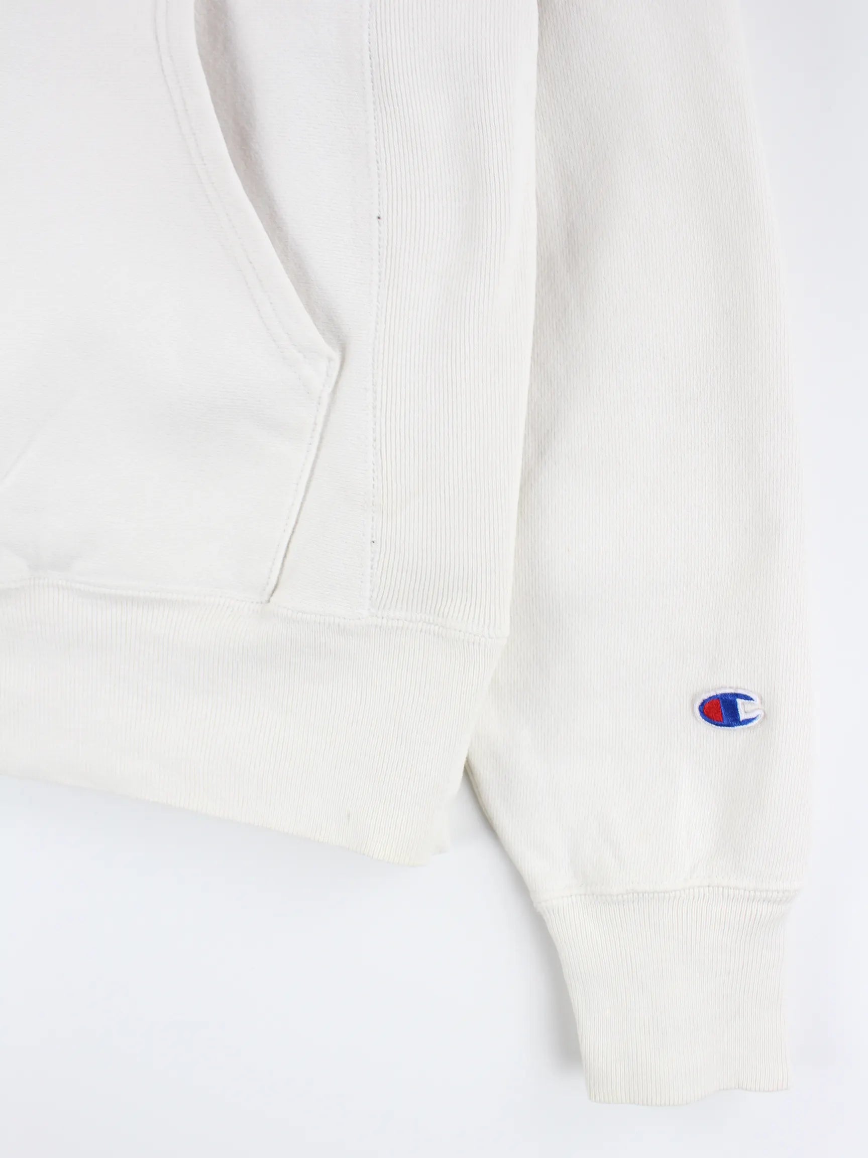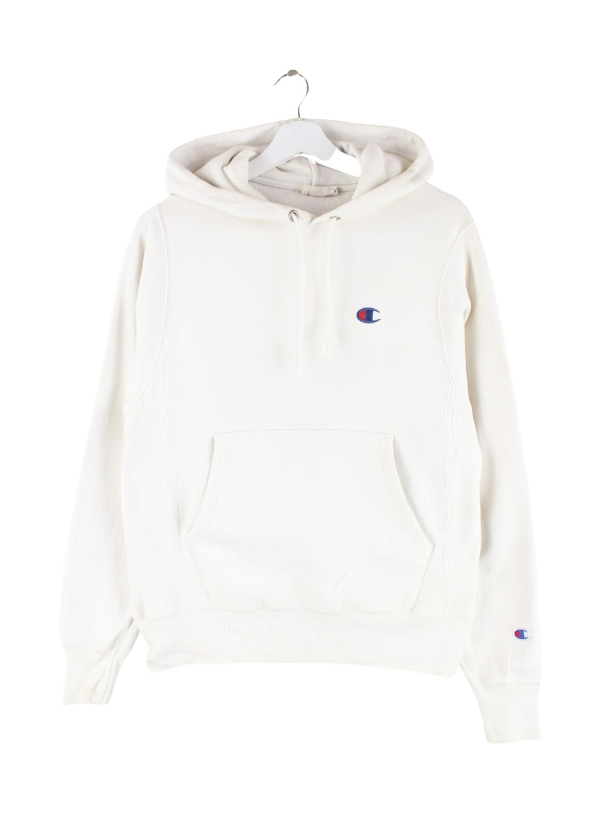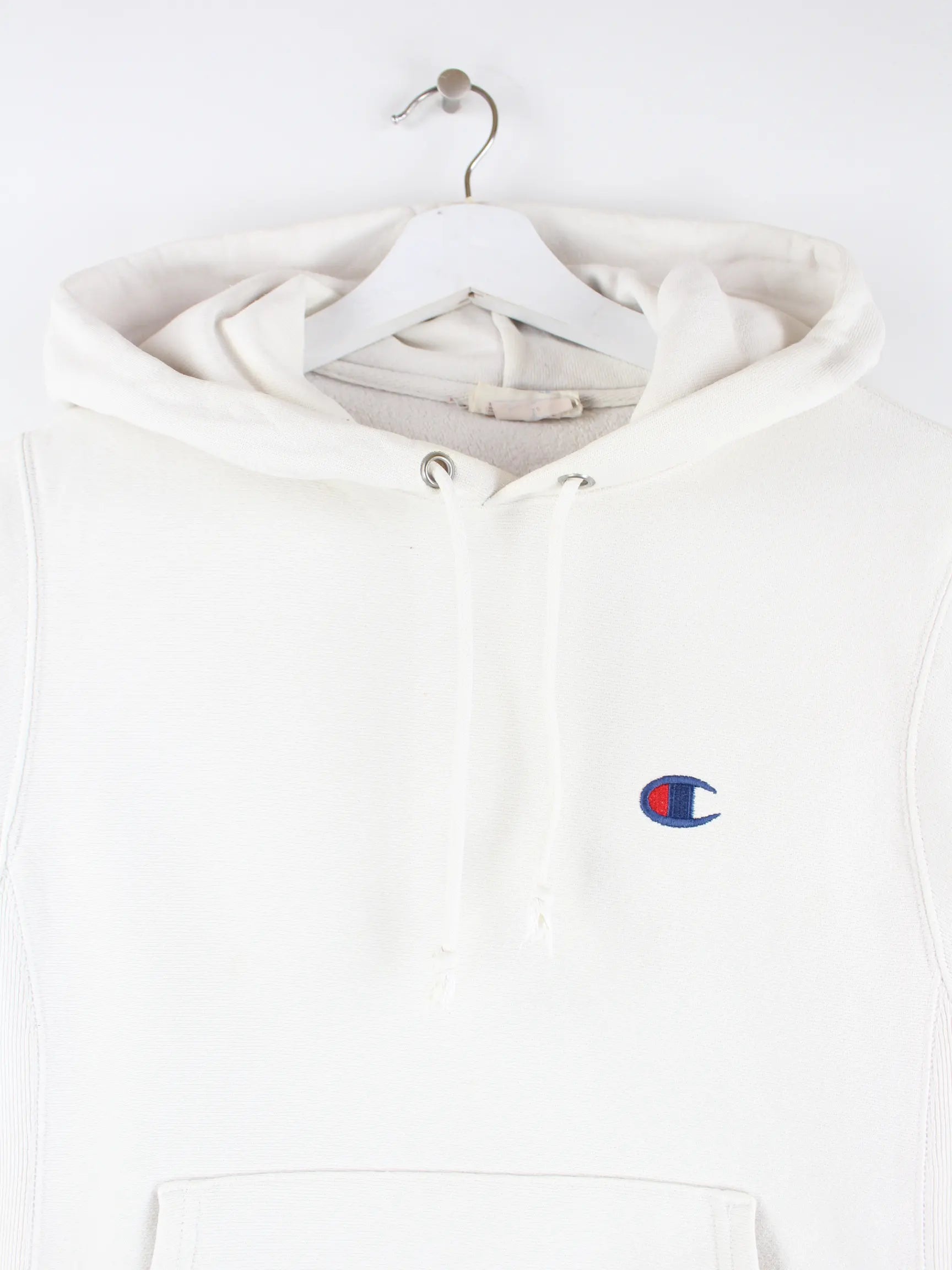 Hoodie vom Brand Champion in Größe XS. Er ist aus einer Baumwollmischung angefertigt und in Weiß in Stock.